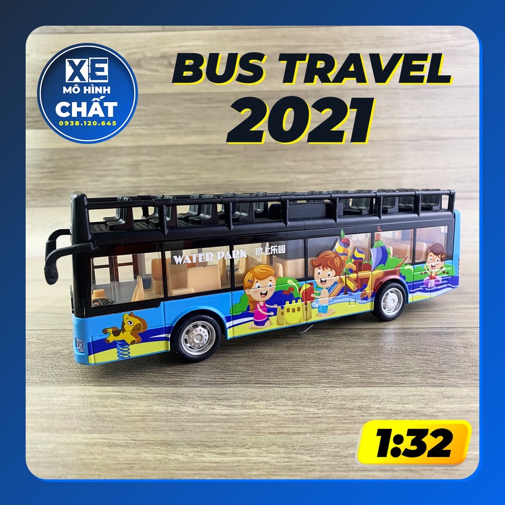 Water Park Travel metal children's toy bus with lights and music