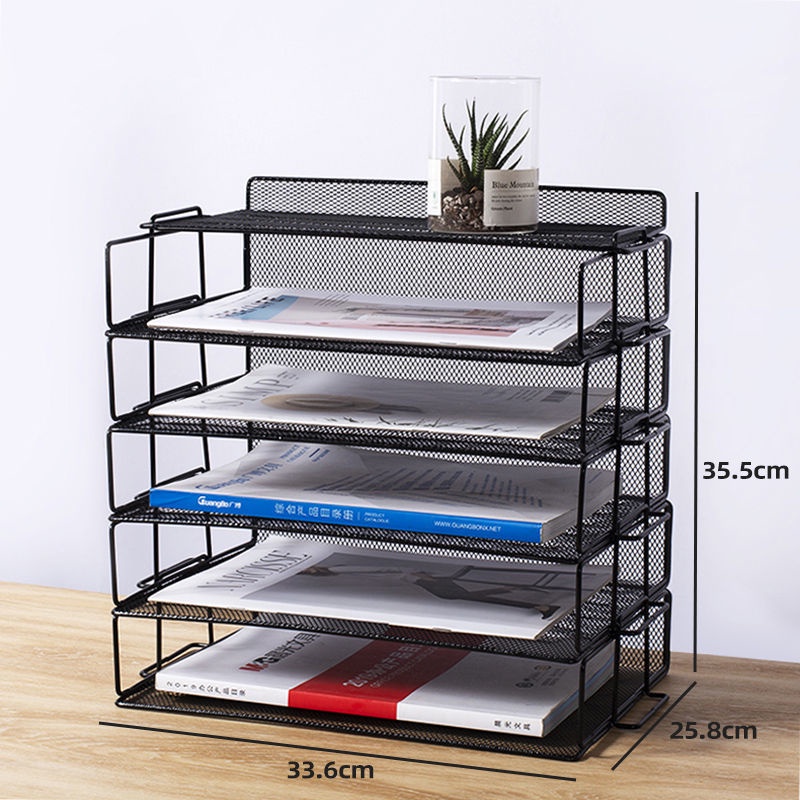 Metal Wire Mesh Storage Holder Desk Document File Organizer Tray Tabletop Office Paper Desk Organizer Document File Letter Book Brochure Filling Tray Rack Shelf Carrier