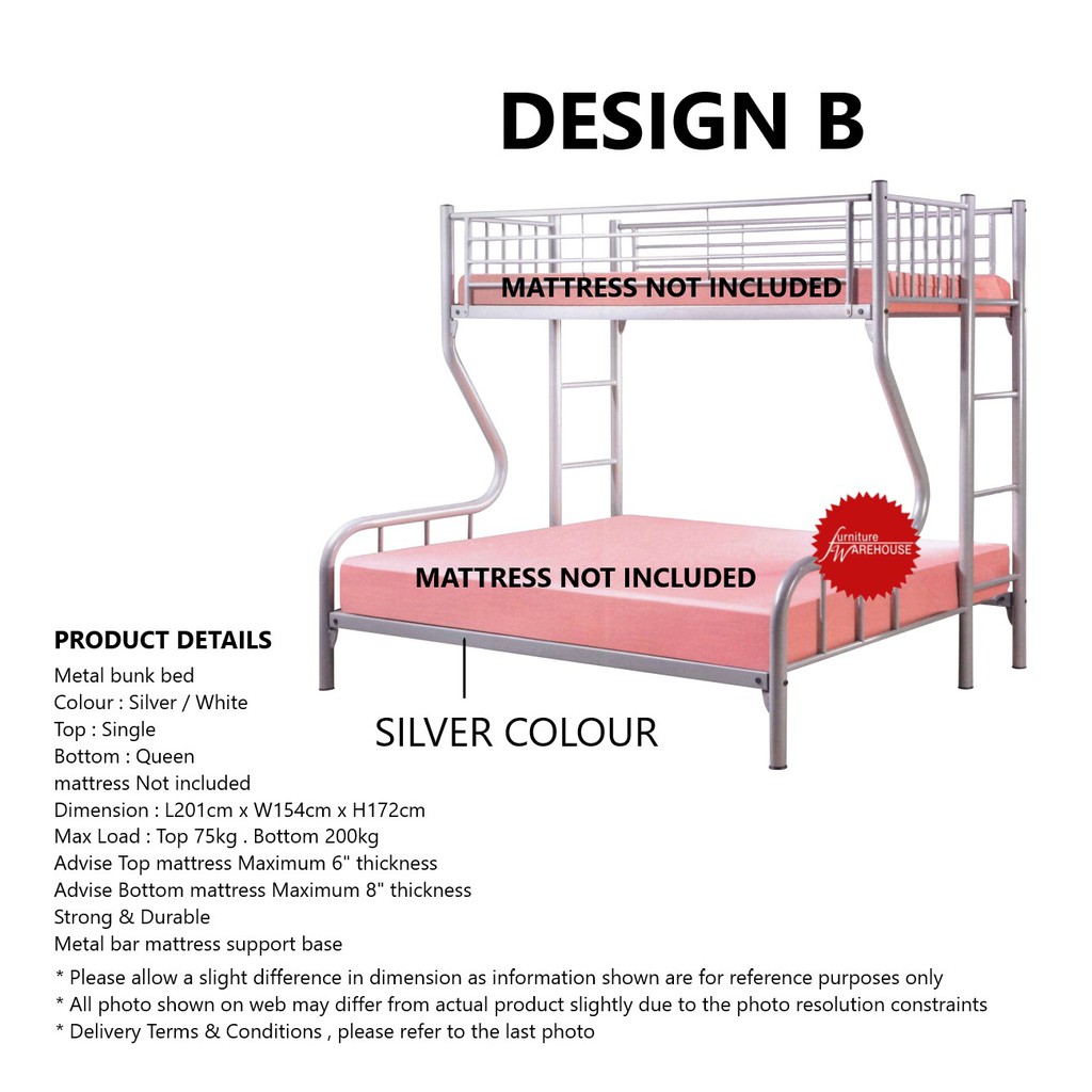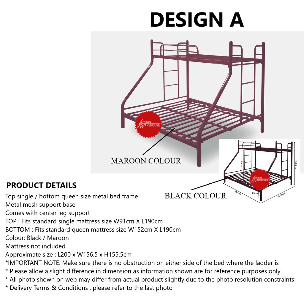 Metal bunk bed frame (comes in 3 design & colours) Bedframe Assembly Included