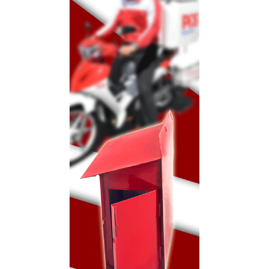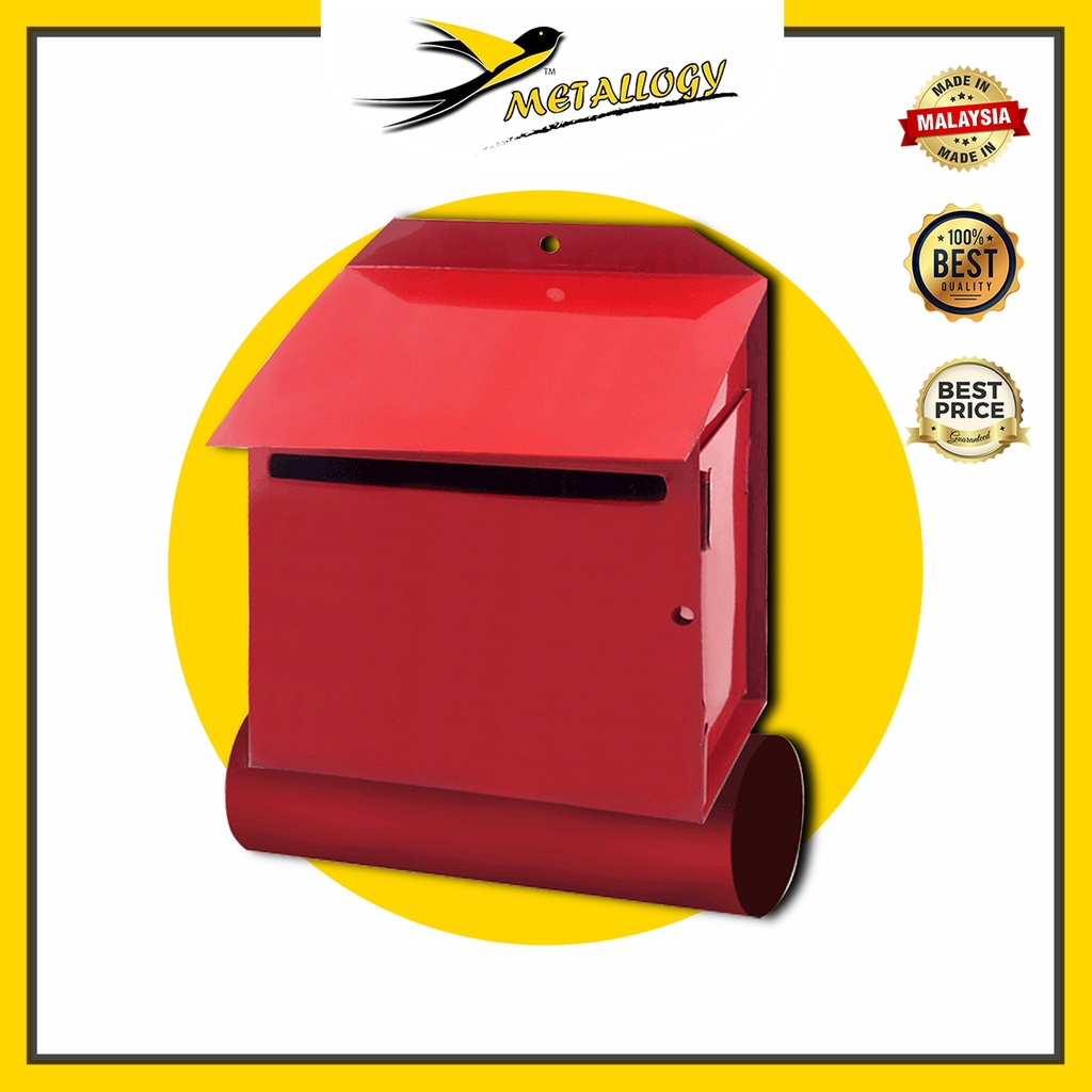 Metallogy Metal Red Post Letter Box With Mail Box And Newspaper Holder / Peti Surat Besi/ Mailbox/ Letterbox