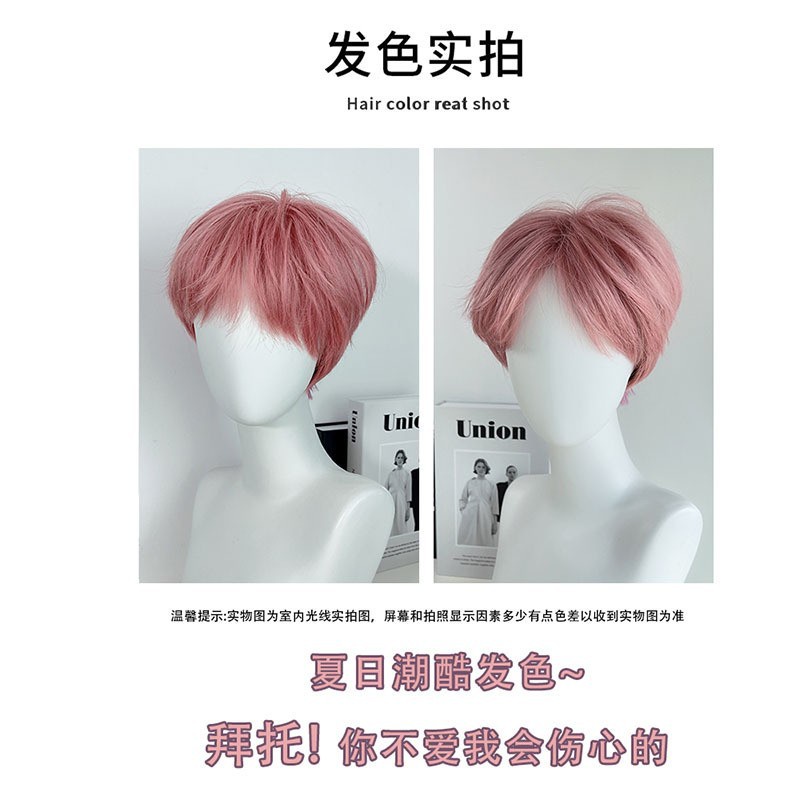 Mgb-517 Wig Short Hair Pink Full Headgear Style Korean Version Handsome Daily Middle Section Men's Non-Mainstream Fluffy Hair Cover