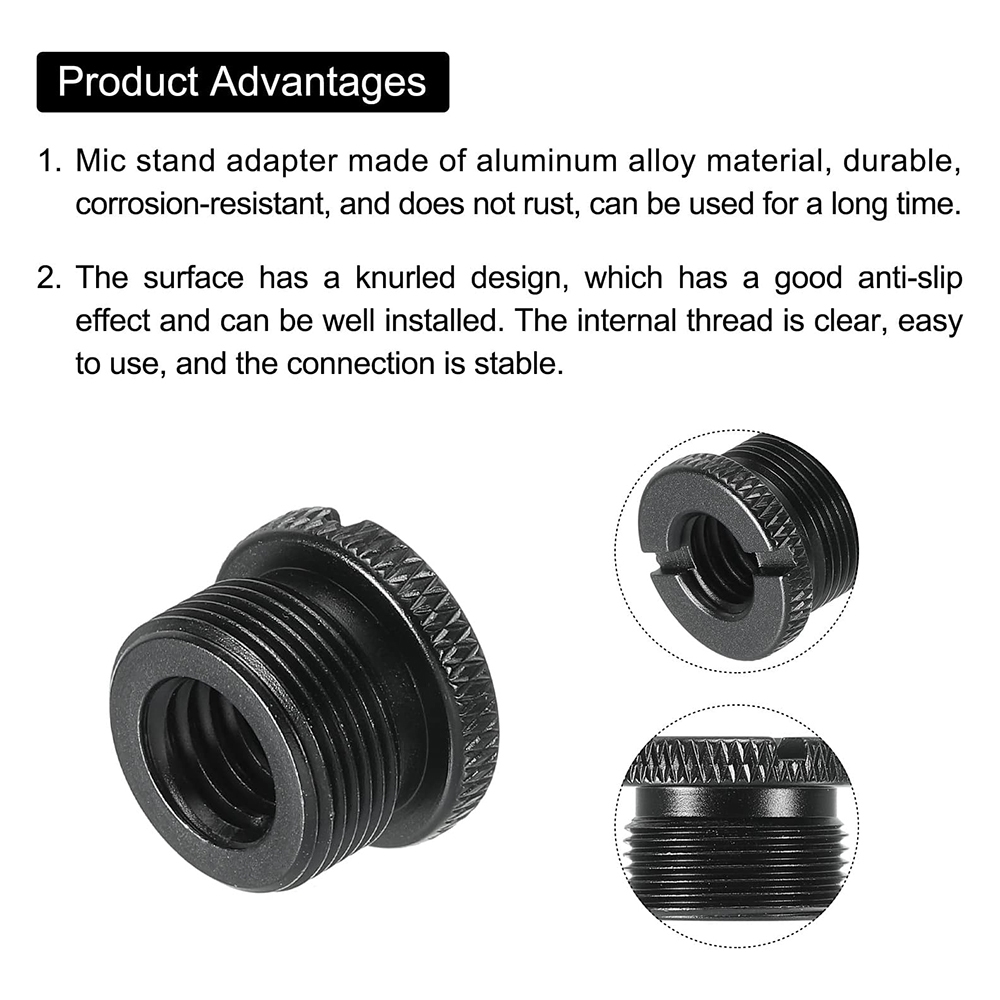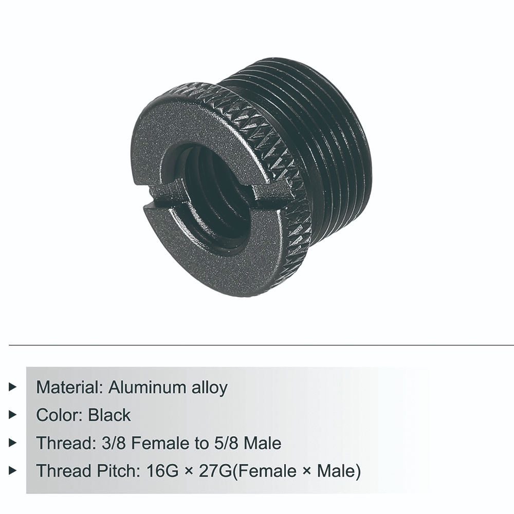 Mic Stand Adapter 3/8 Female to 5/8 Male Aluminum Alloy Mic Screw Adapter for Microphone Tripod Stand Black