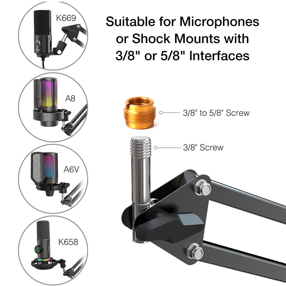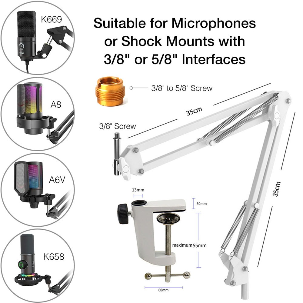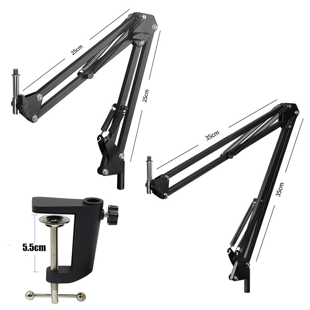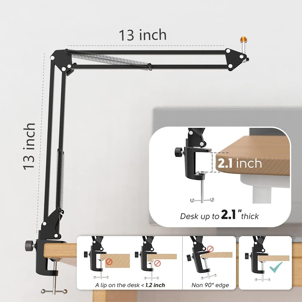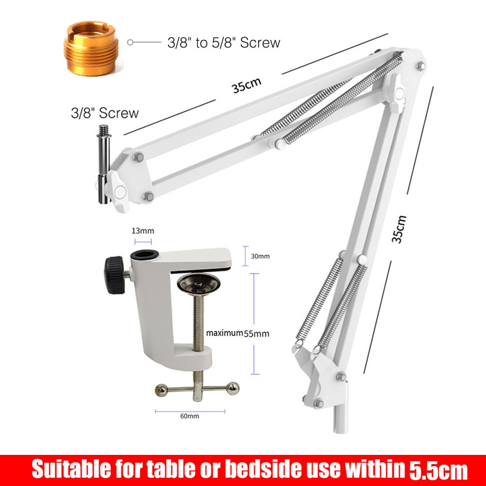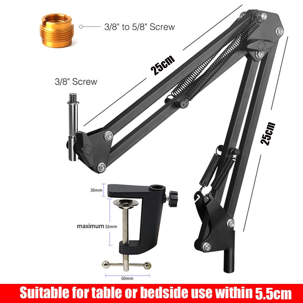 Microphone Arm Stand Adjustable Suspension Boom Scissor Arm Stand Upgraded Duty Microphone Stand 3/8" to 5/8" Adapter, for Voice-over, Gaming