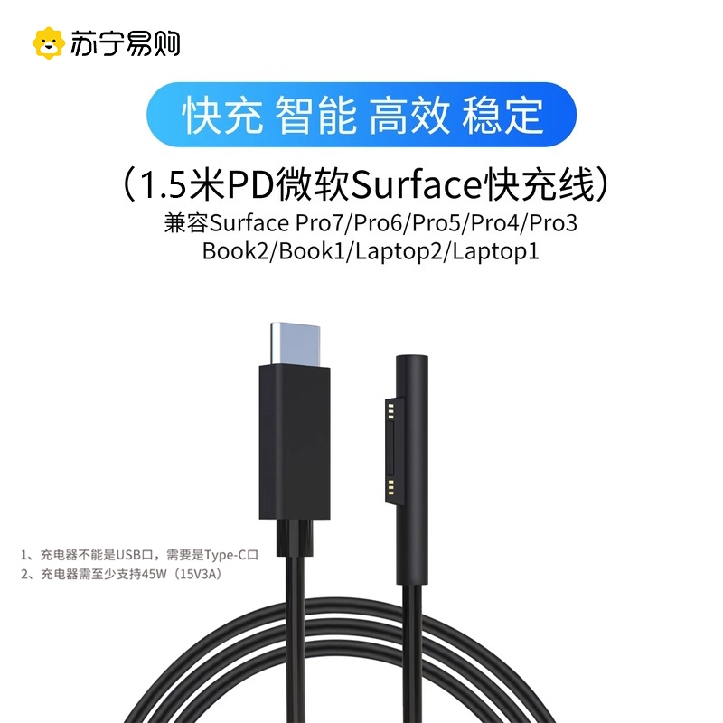 Microsoft Surface Charging Cable Charging Head PD Fast Charging Type-C to Pro7/8 Data Cable go2/3 Charger Surface Pro6/5/4 Tablet BookLaptop