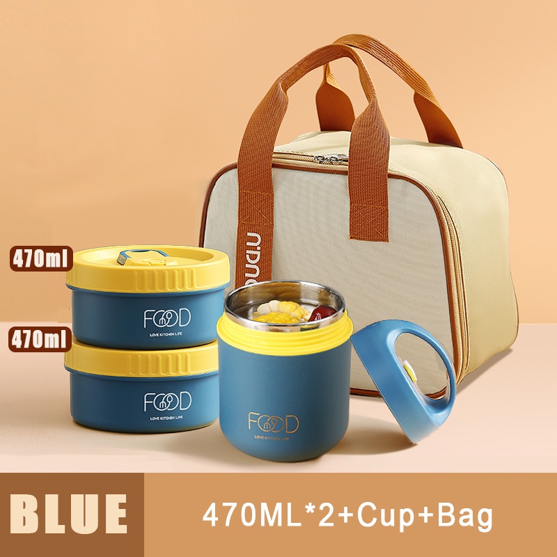 Microwaveable 304-Grade Lunch Box With Soup Cup Thermal Insulation Lunch Box Food Kid School Lunch Box Food Container Storage Box YM12