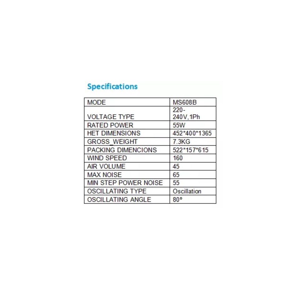 Midea 16" Black-Colour Stand Fan / Standing Fan [MS608B]