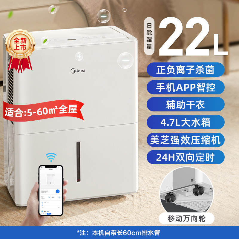 Midea Dehumidifier Household 22L Bass Dehumidifier Dehumidifier Negative Ion 12L Dryer Removable Portable Dehumidifier Moisture Absorber Dehumidification 4.7L Water Tank Water Absorption Machine Gift Ultrasonic Humidification