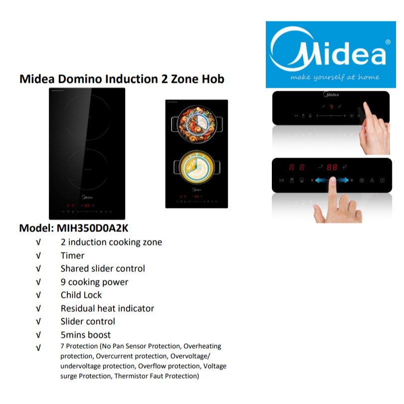 Midea MIH350D0A2K Domino Induction 2 Zone Hob Induction Cooker Kitchen Hob
