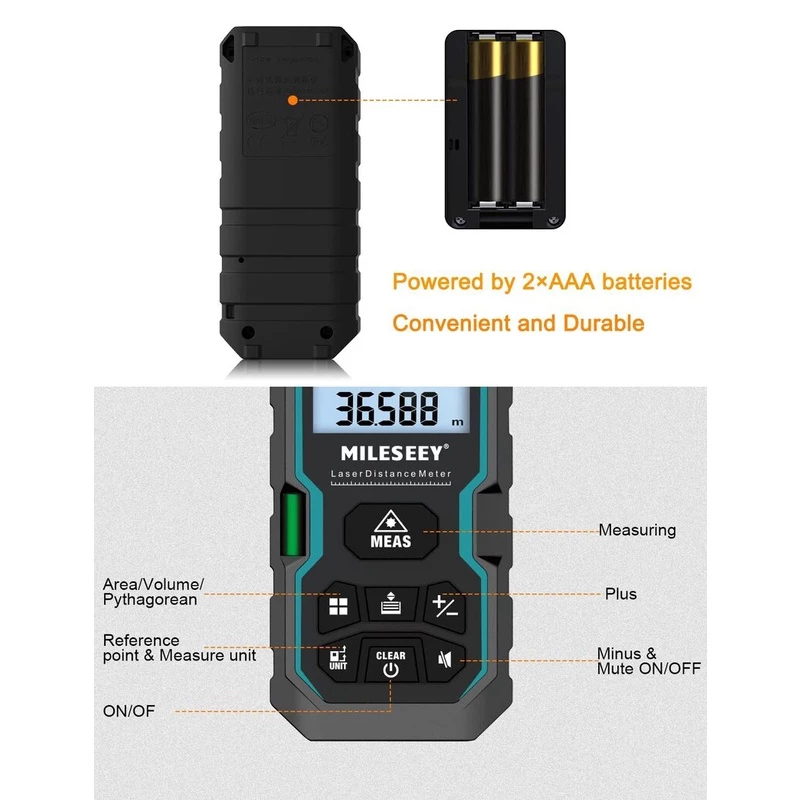Mileseey S6 Laser rangefinder 120M Infrared laser range finder M/In/Ft/In+Ft Laser tape measure Area and volume measurement, interior design