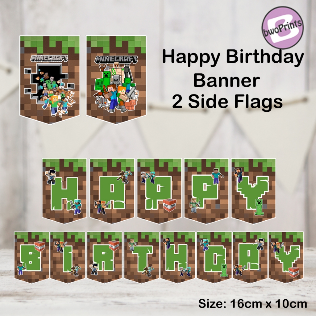 Minecraft Happy Birthday Banner Cake Topper Cupcake Topper Party Gift Label Wedding Celebrate Engagement Sicker