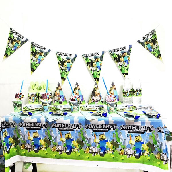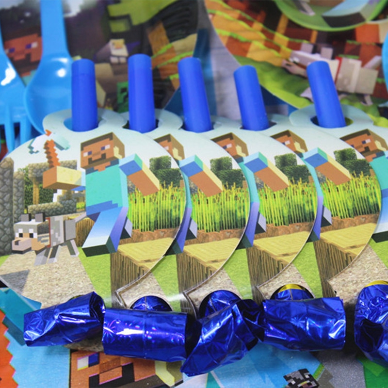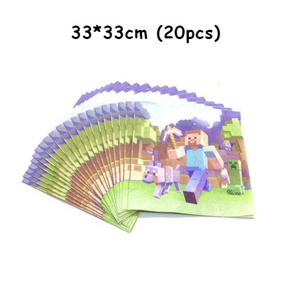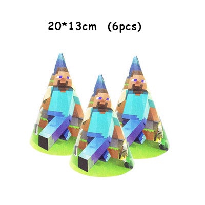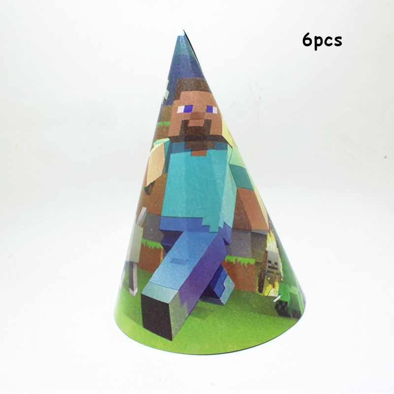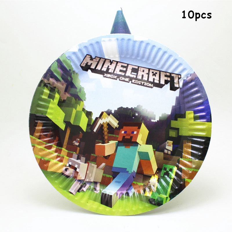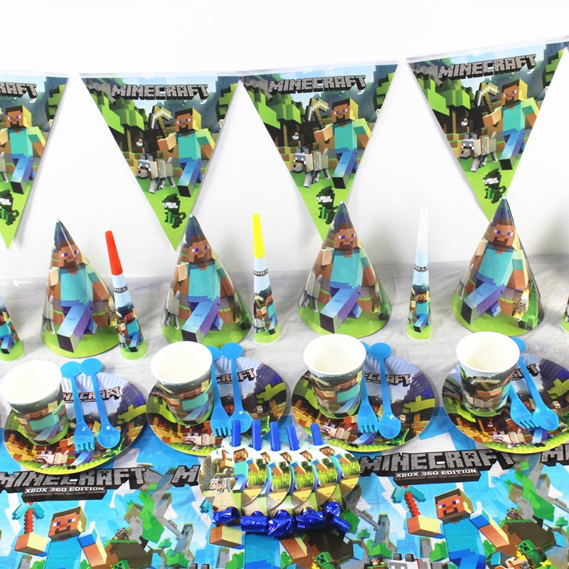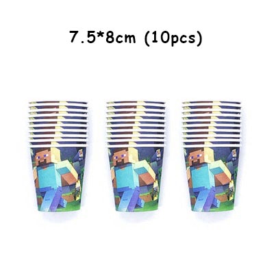 Minecraft Theme Disposable Tableware Cartoon Paper Cup Plate Hat Kids Favor Tableware Happy Birthday Party Decoration