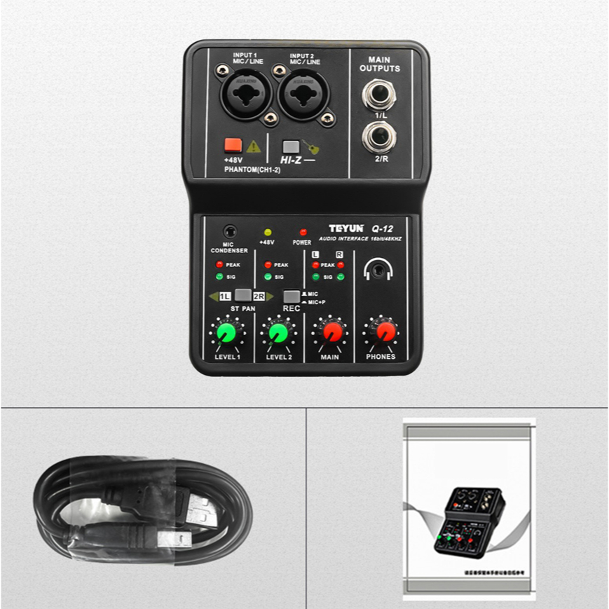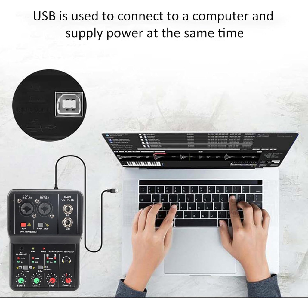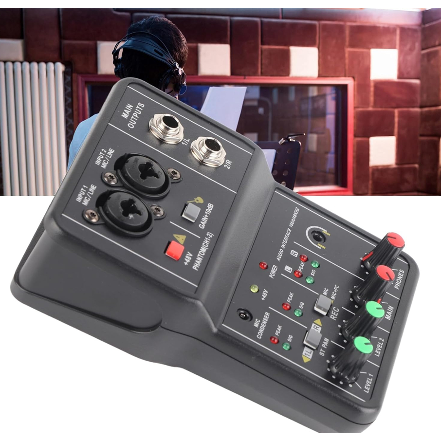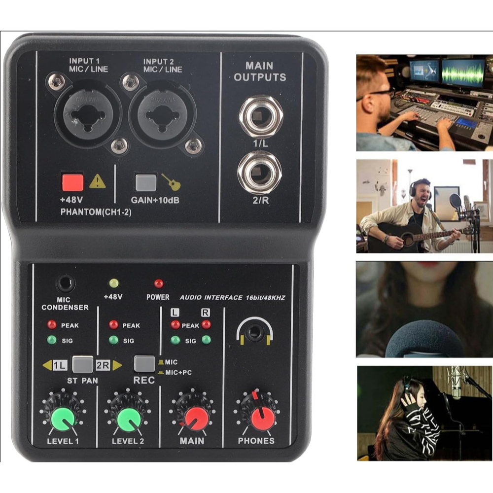Mini 2 Channel Audio Mixer USB Sound Card Compact Sound Mixing Console for Music Recording