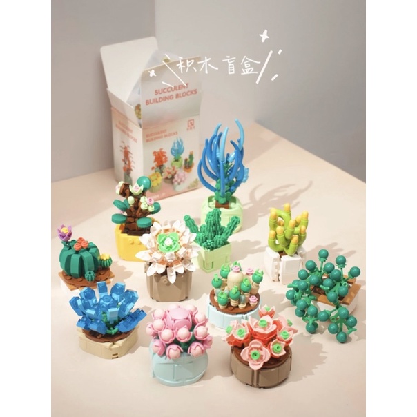 Mini Blind Box Succulent Potted Flower Building Blocks/Set Bouquet Birthday Farewell Gift Goodie Bags Desktop Decoration
