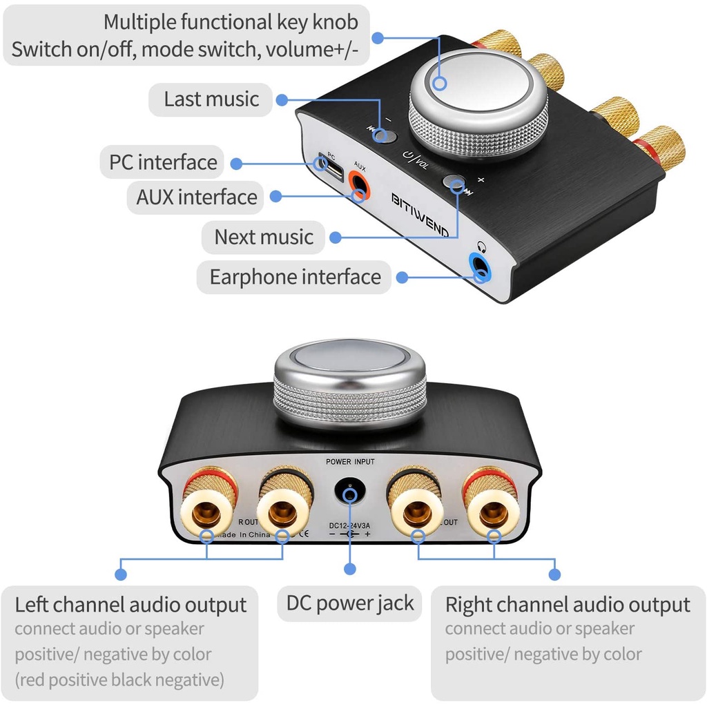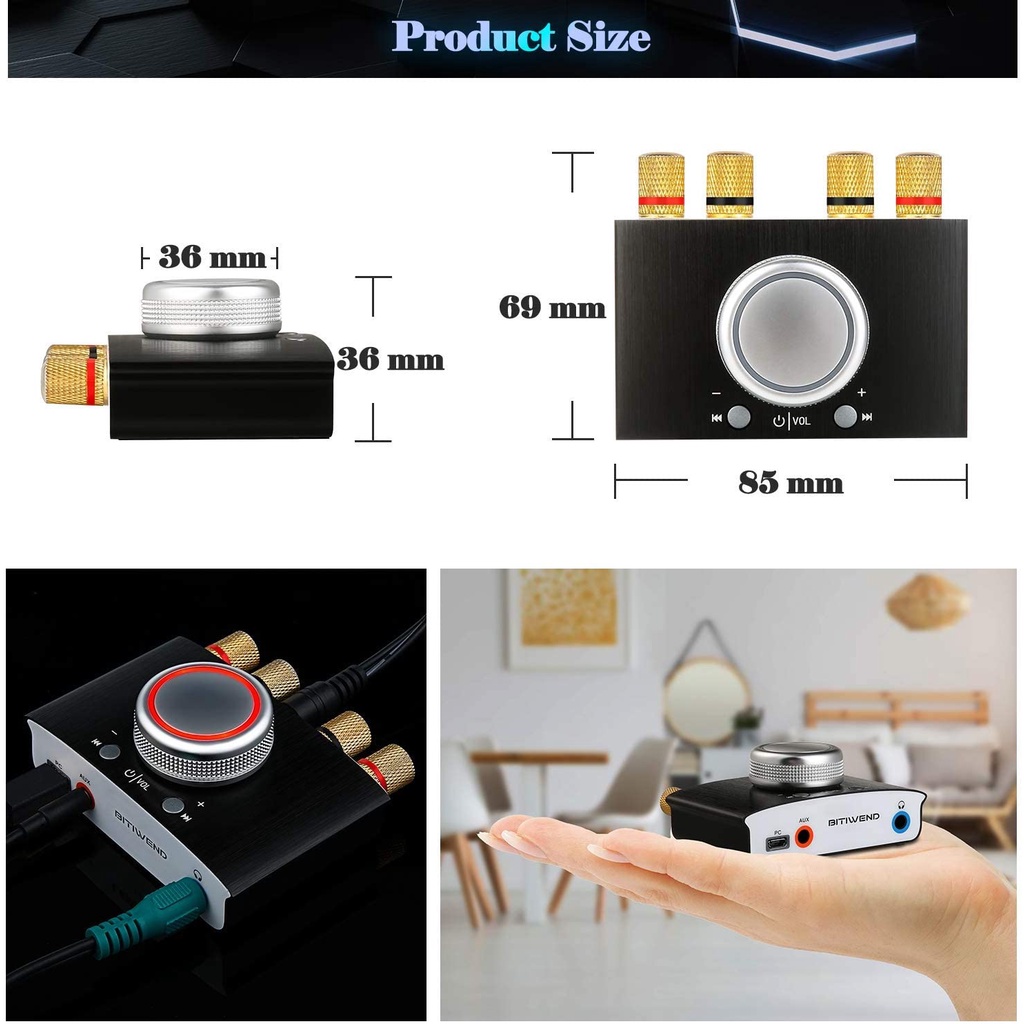 Mini Bluetooth Amplifier, BITIWEND HiFi Amplifier Bluetooth 5.0 Audio Power Amplifier, Stereo Hi-Fi Digital Amp 2.0 Chan