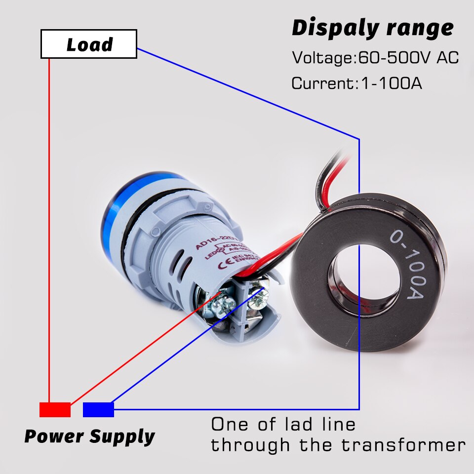 Mini Digital Voltmeter Ammeter 22mm Round AC 50-500V 0-100A Amp Volt Voltage Tester Meter Dual LED Indicator Lamp Light