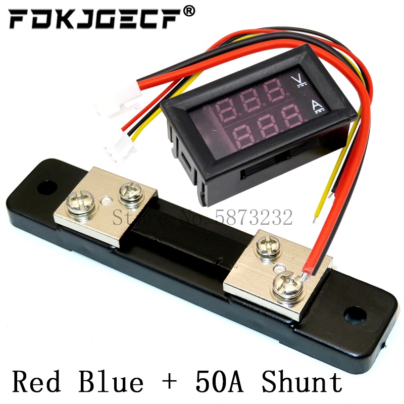 Mini Digital Voltmeter Ammeter DC 0-100V 50A Amp Volt Voltage Current Meter Detector Tester 0.28" Dual LED Display Gauge + Shunt