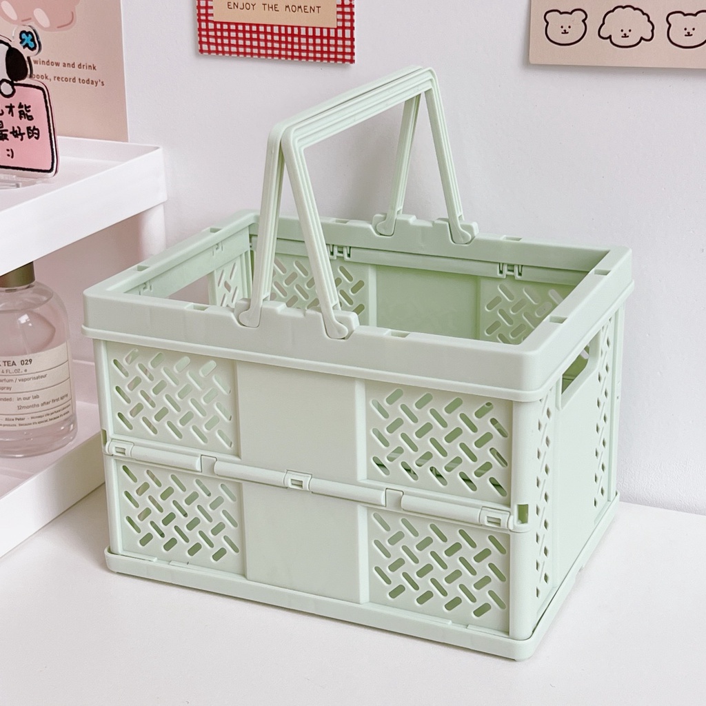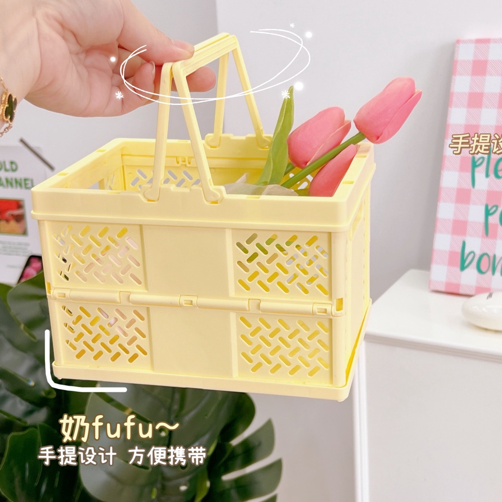 Mini Folding Plastic Storage Box Foldable Case Desktop Carrying Basket Portable Storage Basket