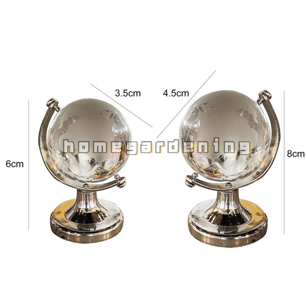 Mini Round Earth Globe Crystal Home Ornament Glass Globe Rotating Clear Balls Stand Desk Ornament Crafts
