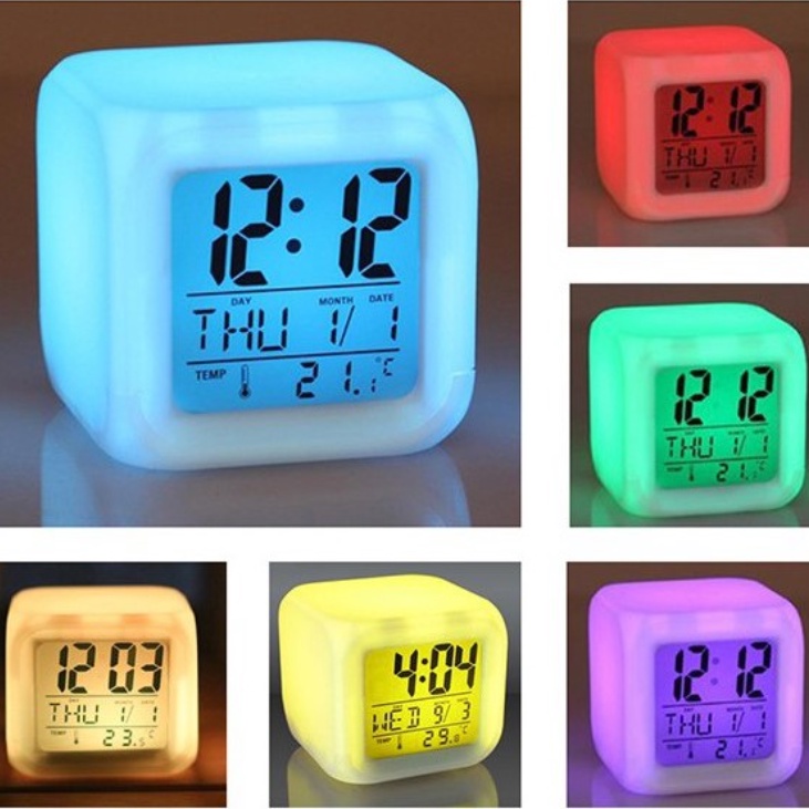 Mini Square Digital LED Clock 7 Colours Light Effect Colourful
