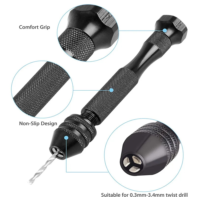Mini Tool Set with Black Hand Twist Drill 10Pcs Fried Dough Twists Drill for Woodworking Drilling Rotary Wood Holes Tools