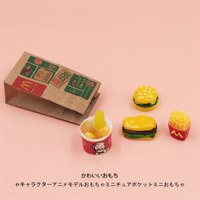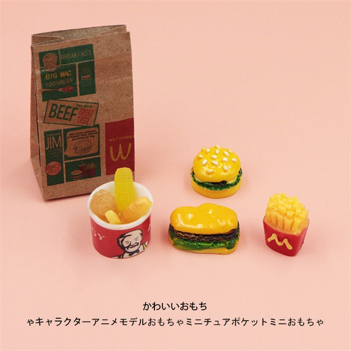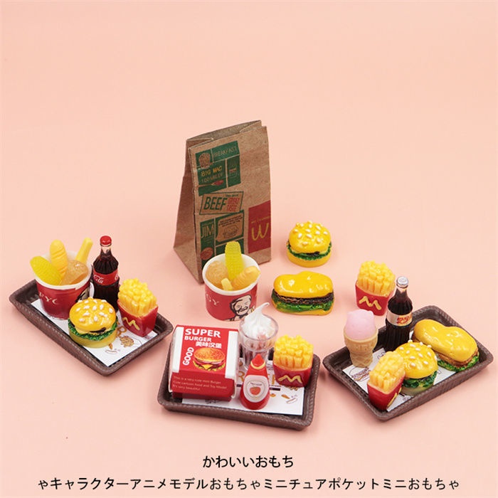 Mini Toys Simulation Real Things Burgers Family Buckets French Fries Miniature Food Play Model Ornaments