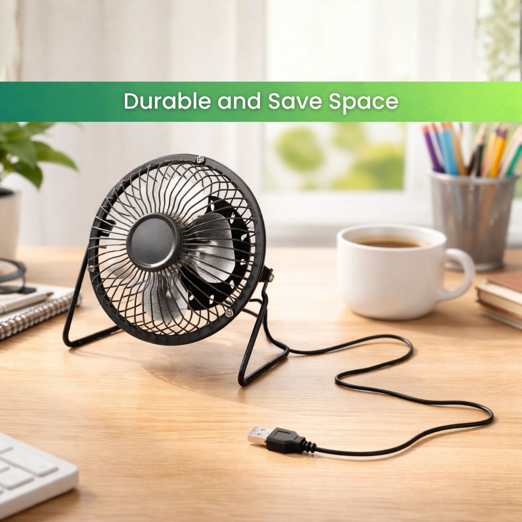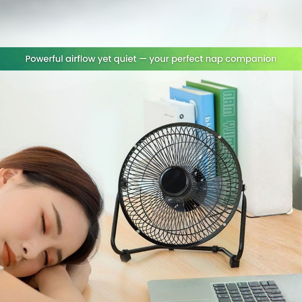 USB Mini Fan Strong Wind Cool Table Fan Mini USB Bedroom Camping Fan Metal Silent 4 Blades Kipas Besi kipas meja A18