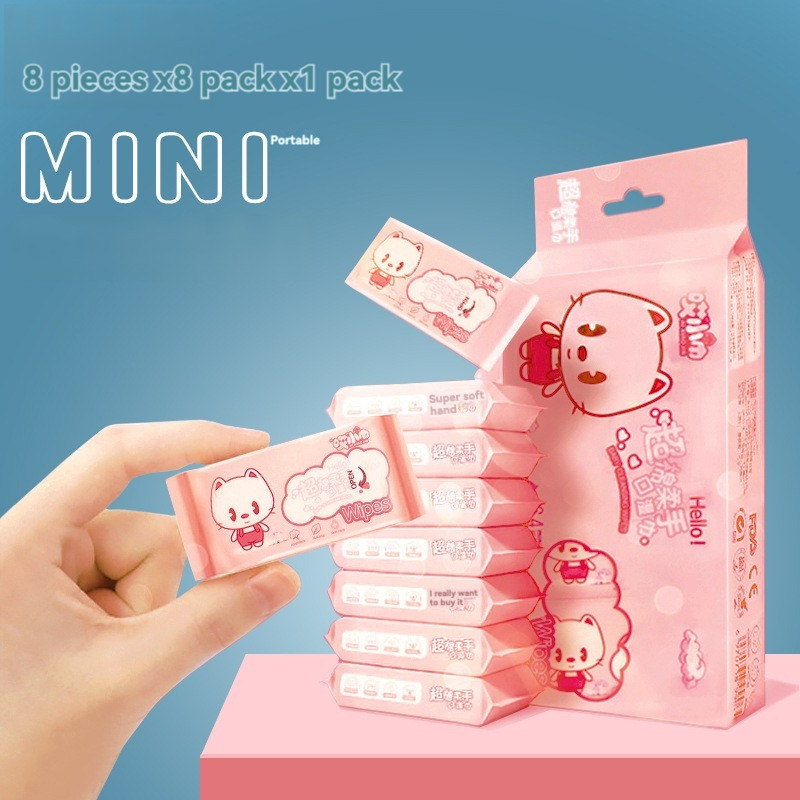Mini Wet Wipes Portable Wet Tissue Pack for Kids Travel-Friendly Hand Mouth Cleaning