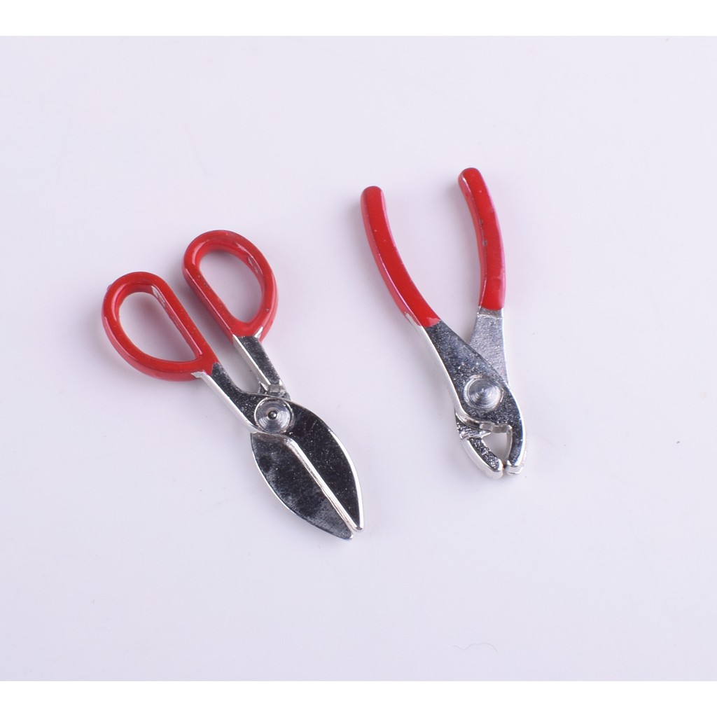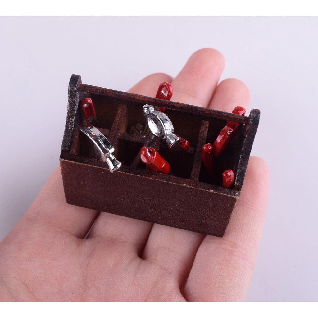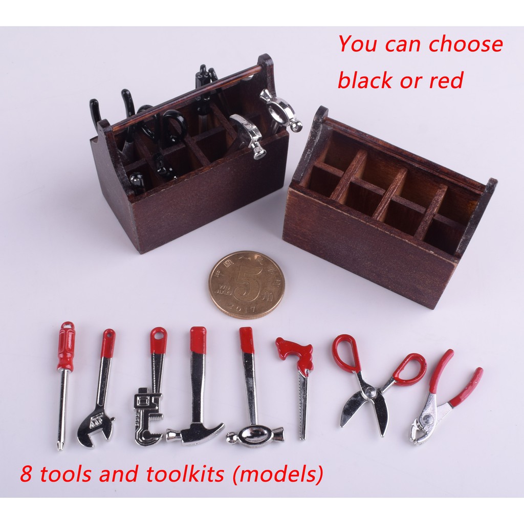 Mini toolkit,tool model,Dollhouse Miniature Tool,Black/red Metal wrench hammer scissor Model Set,Wooden tool box,Parts Toys Hobbies (gift)