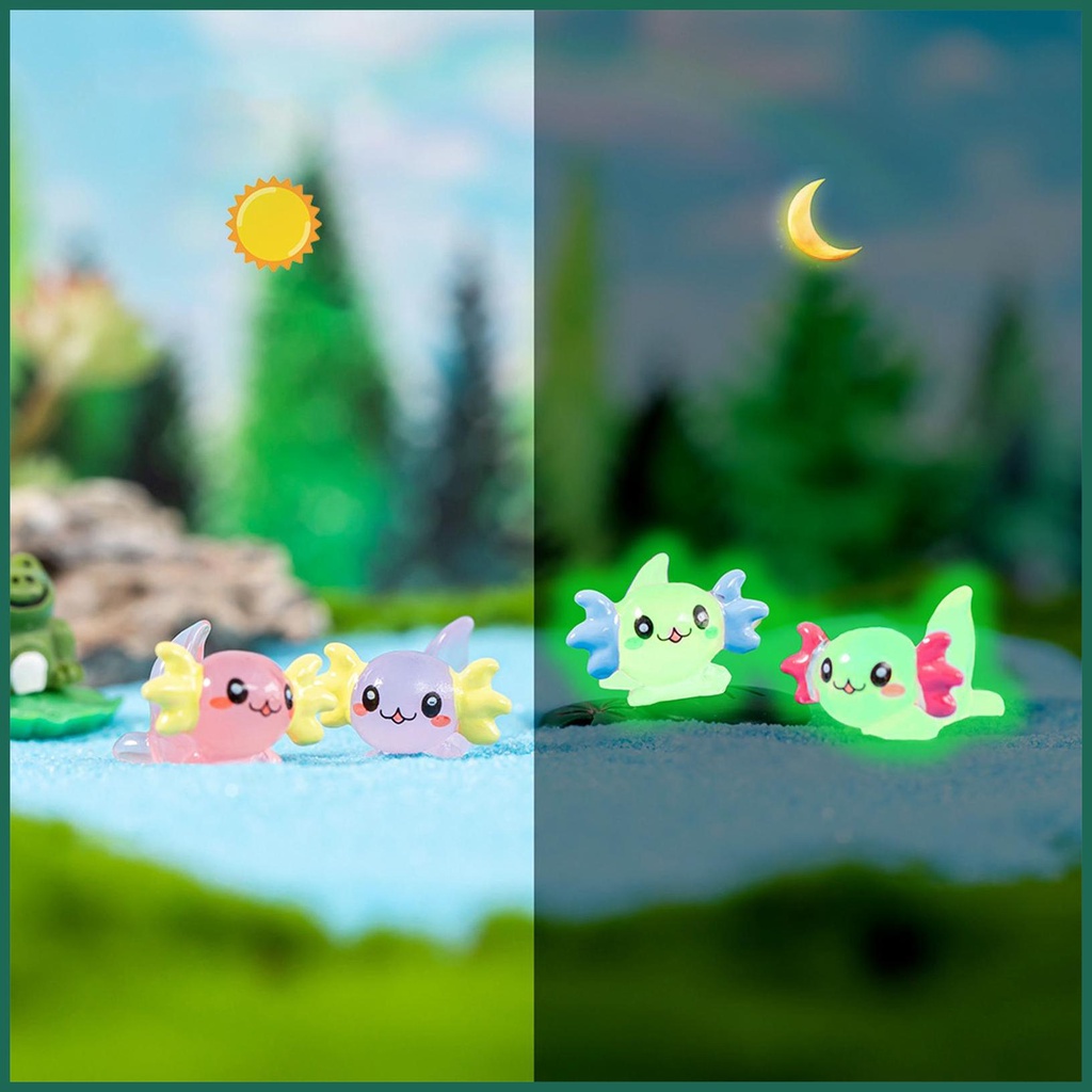Miniature Axolotl Figurines Cartoon Resin Tiny Axolotl Figures in the Dark Small Aquarium Accessories Luminous juasg