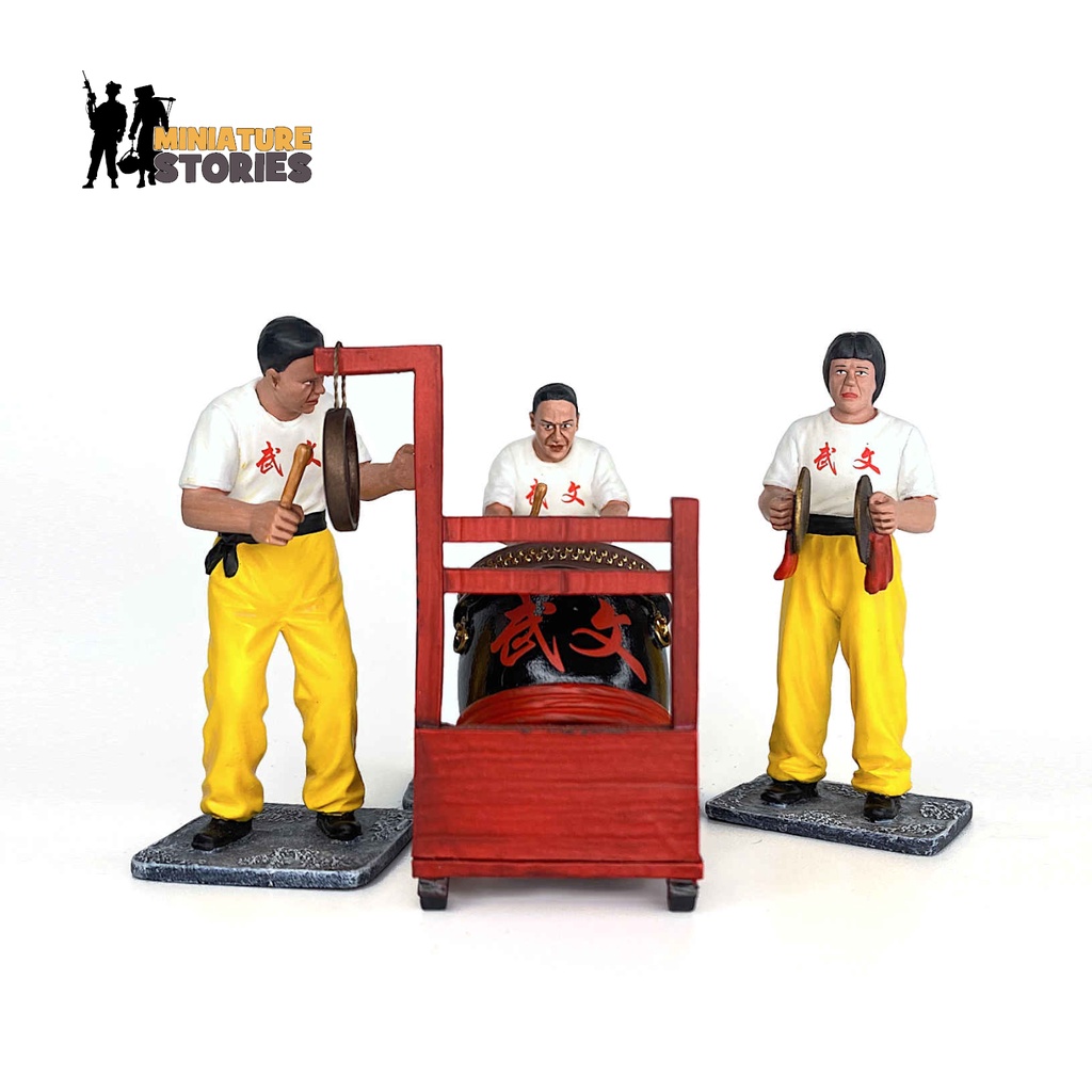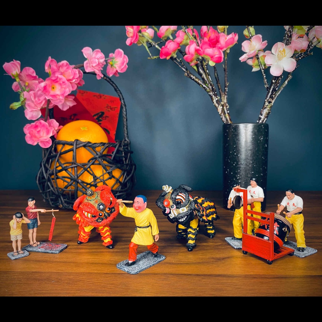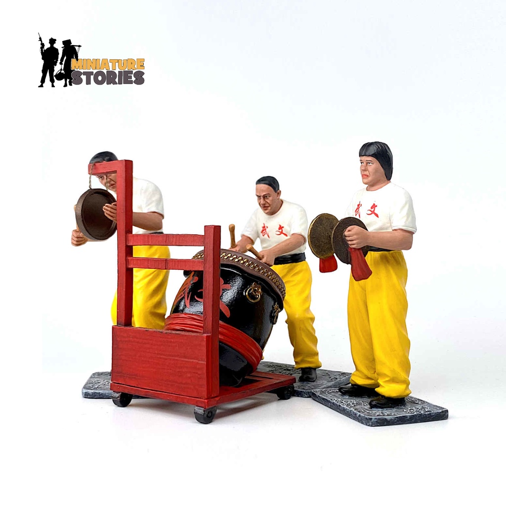 Miniature Lion Dance Musicians Set - Chinese New Year CNY Hand-Painted Metal Figurine Collectibles - Gift / Souvenir