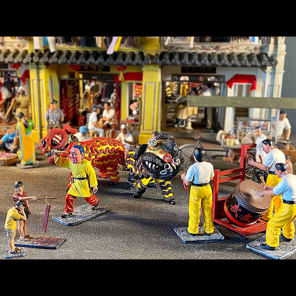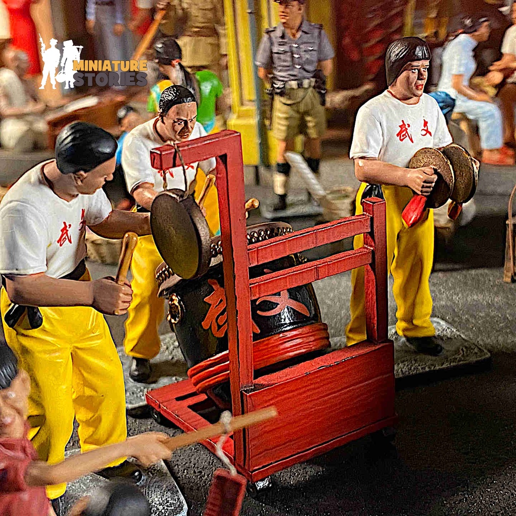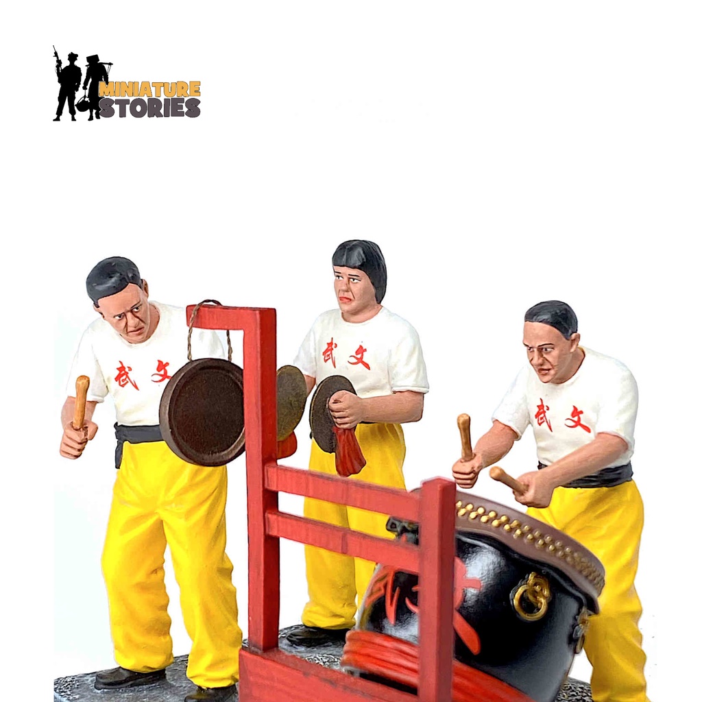 Miniature Lion Dance Musicians Set - Chinese New Year CNY Hand-Painted Metal Figurine Collectibles - Gift / Souvenir