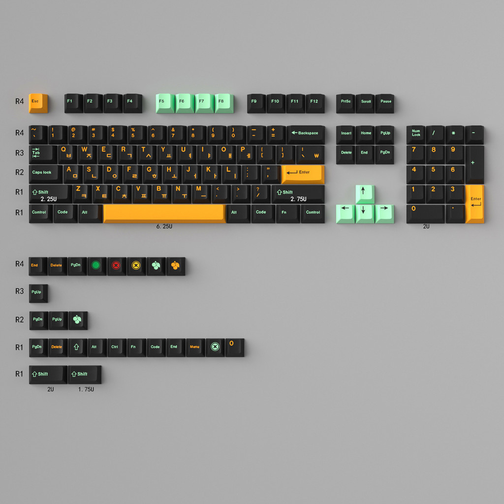 Minimalist Black Keycaps PBT Cherry Profile 1.7mm Thicknees with Japanese Korean stroke for MX Switches Mechanical Keyboard