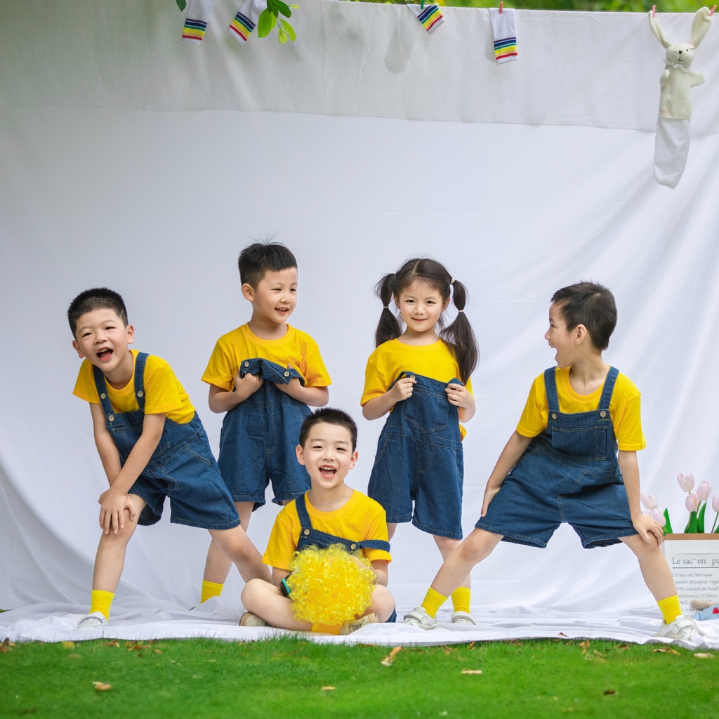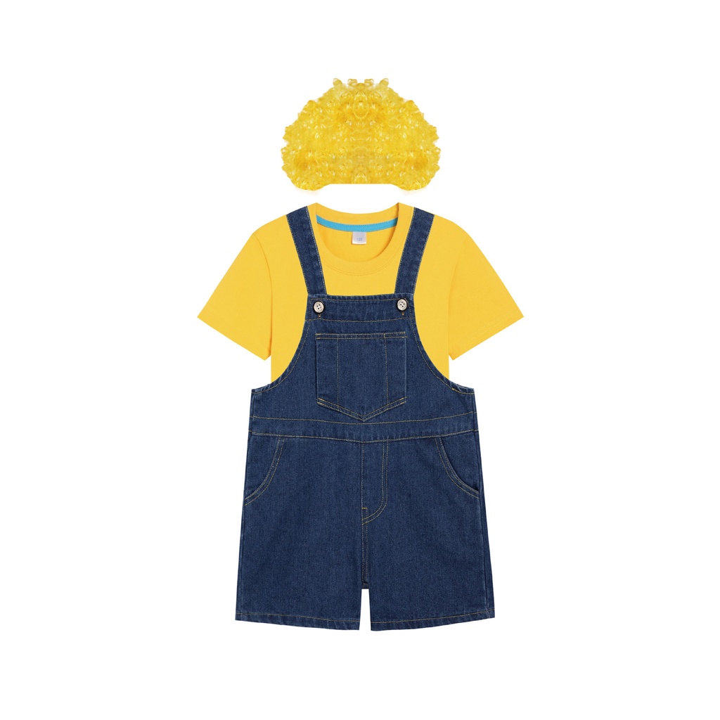 Minion Costume for Kids Boy Yellow Tshirt Denim Strap Pants Wig Glasses Set Terno for Kids School Kindergarten Performance Cosplay Minions Costume Children Birthday Outfit