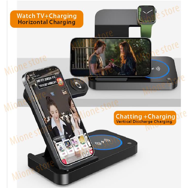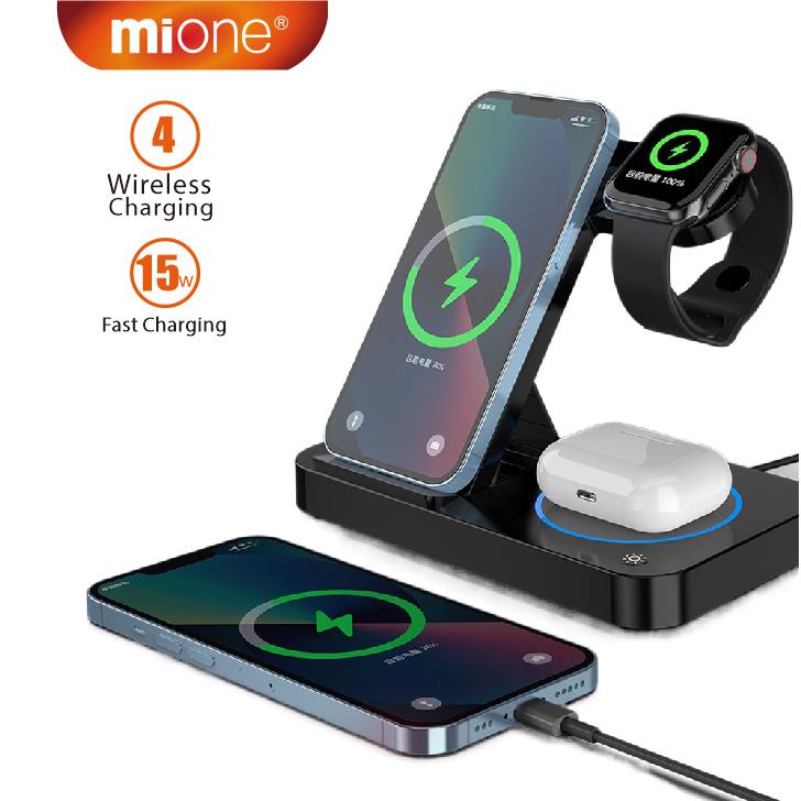 Mione 15W Wireless Charger 3 in 1 Fast Charger 4 in 1 Charging Stand Station Dock Qi With Phone Earphone and Watch