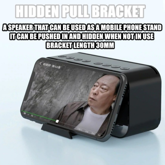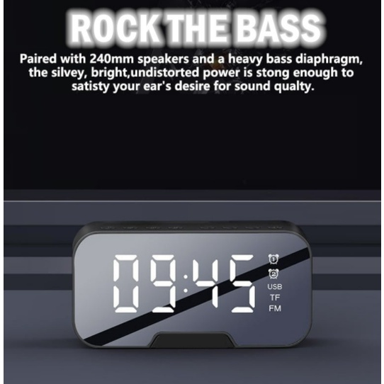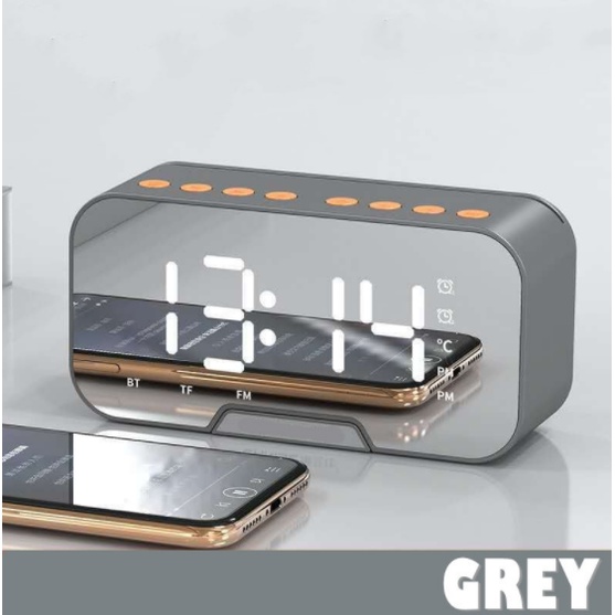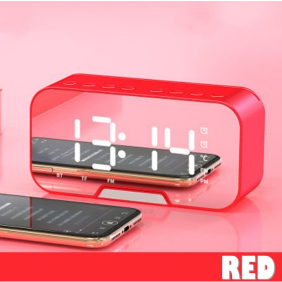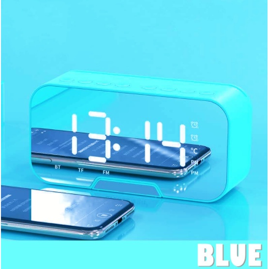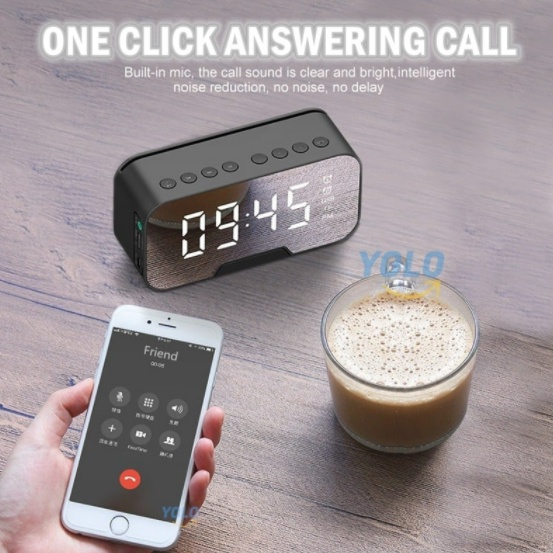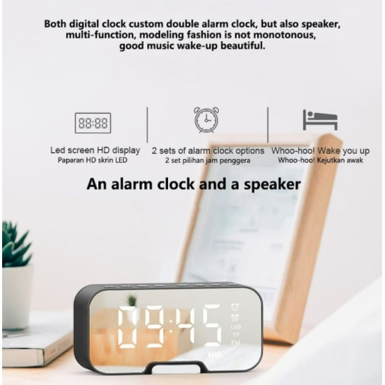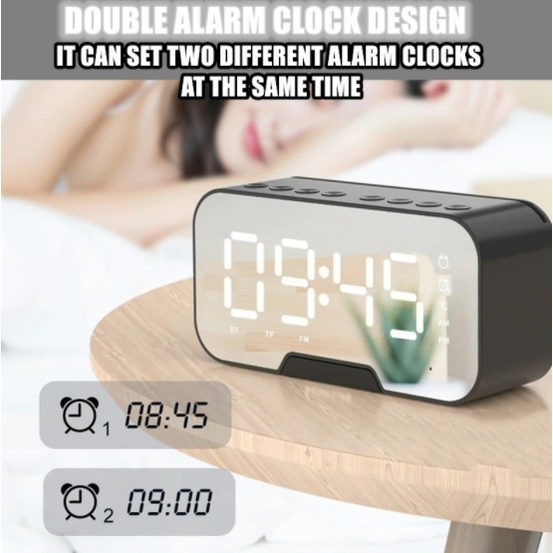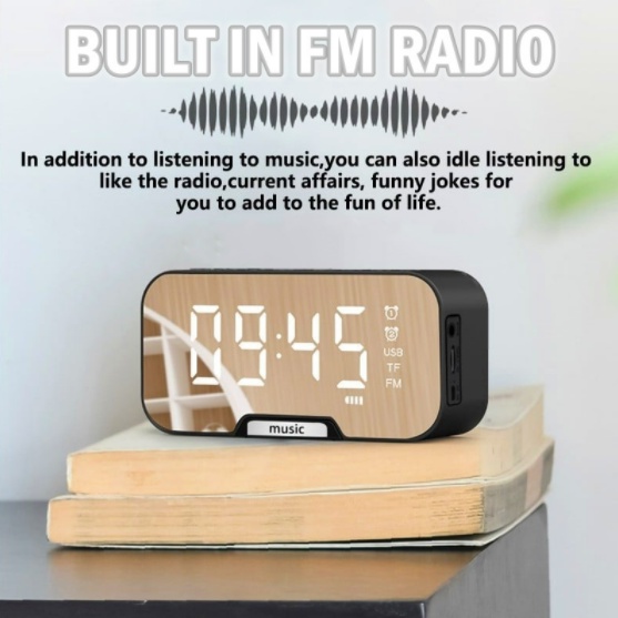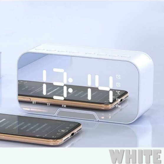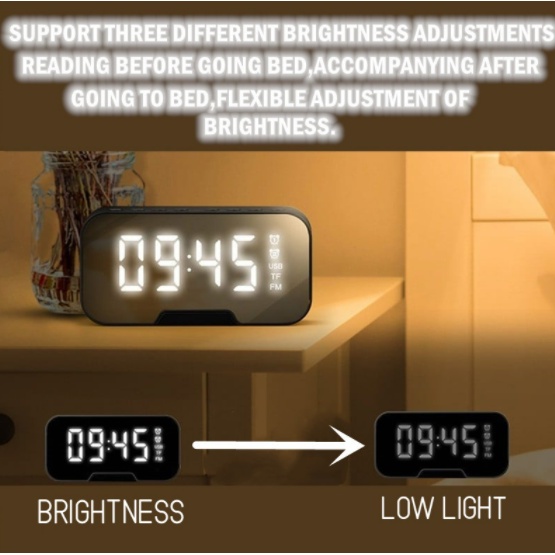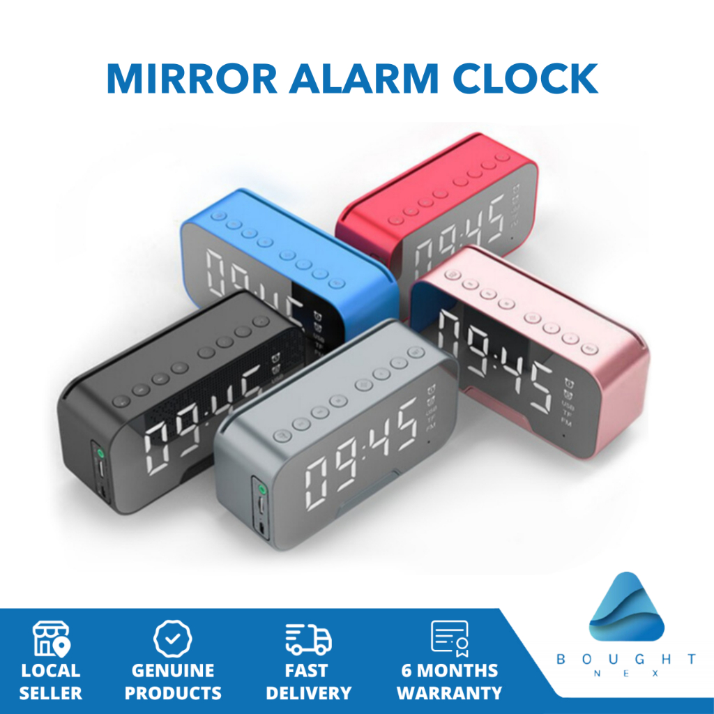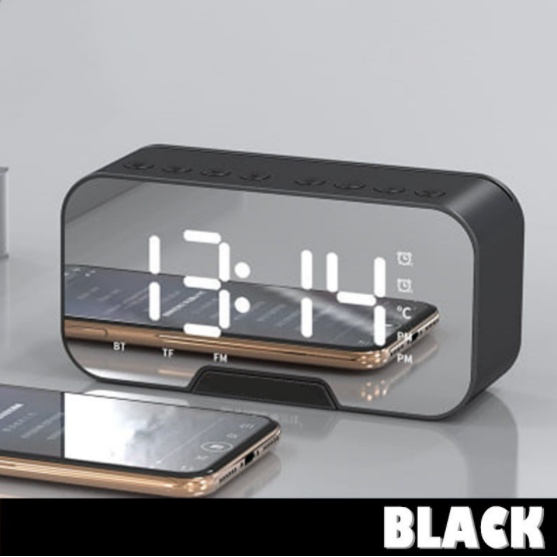 Mirror Alarm Clock Bluetooth Speaker FM Radio Digital LED Display Phone Stand