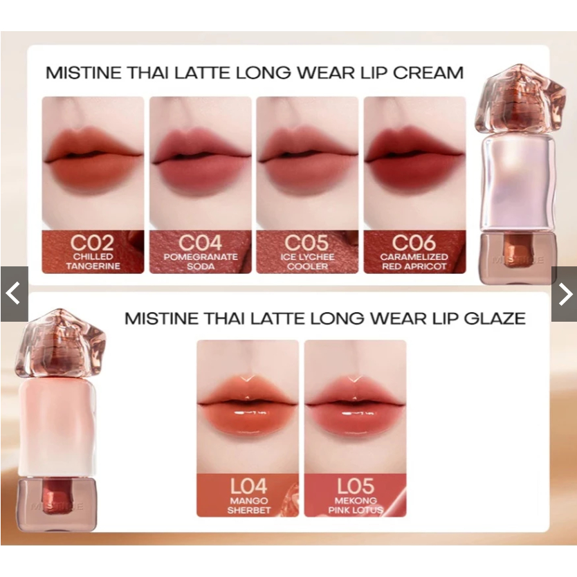 Mistine Thai Latte Lip Cream (Velvet/Long Wear) & Thai Latte Juicy Lip Glaze / Double Ended Lip Gloss