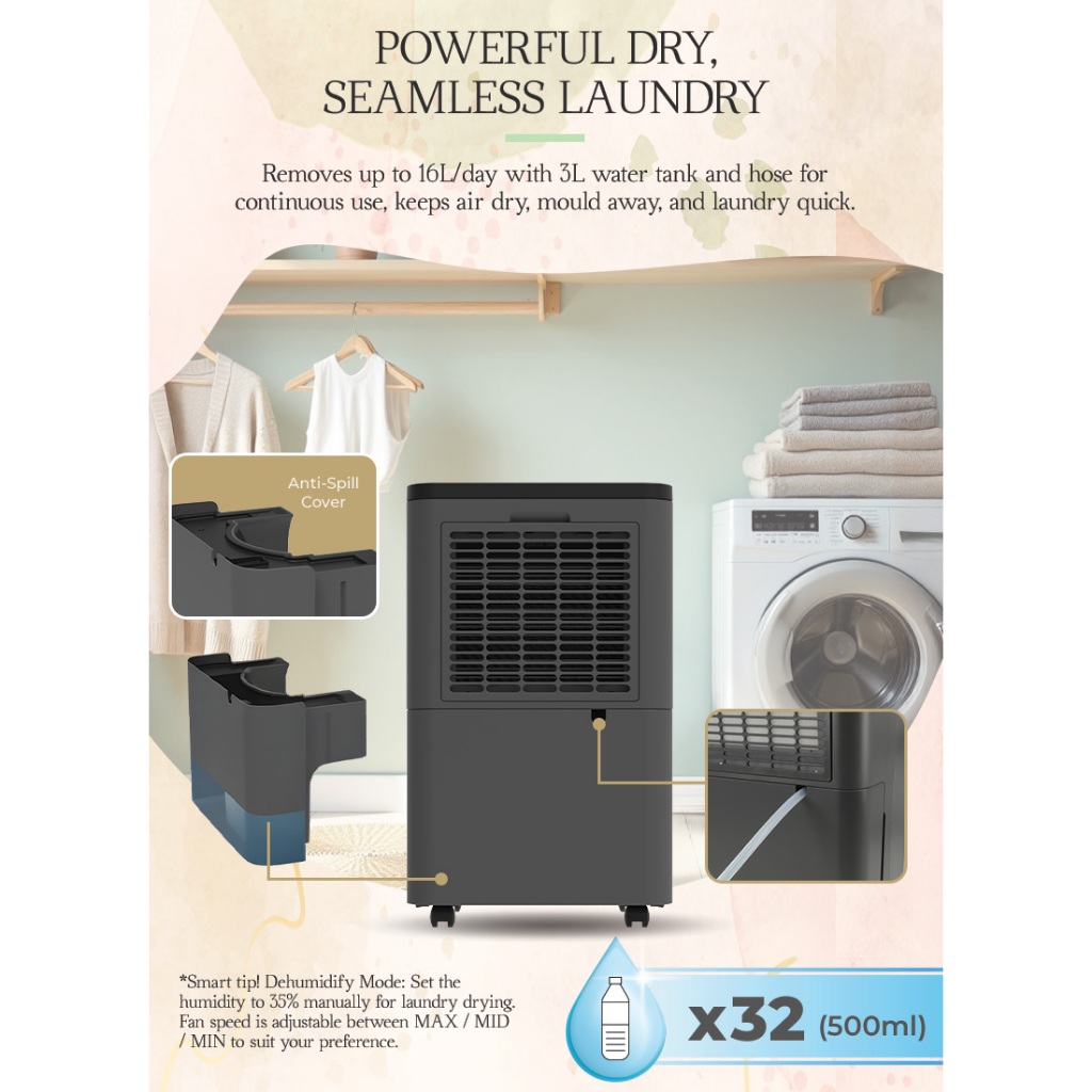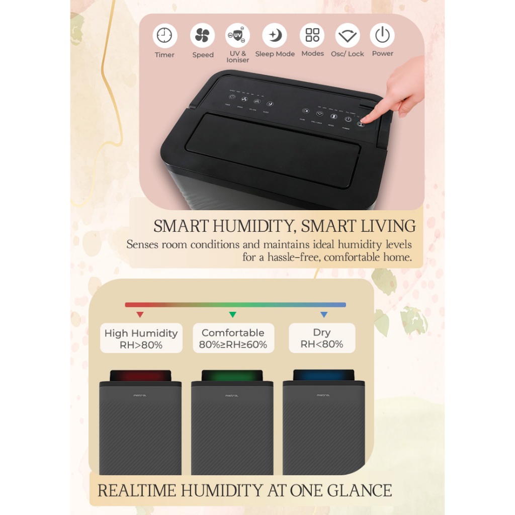 Mistral ÉlanPure 5-in-1 Smart Dehumidifier – 16L (Ioniser / Air Purifier / Deodorising / Wi-Fi Control) MDH1603DW