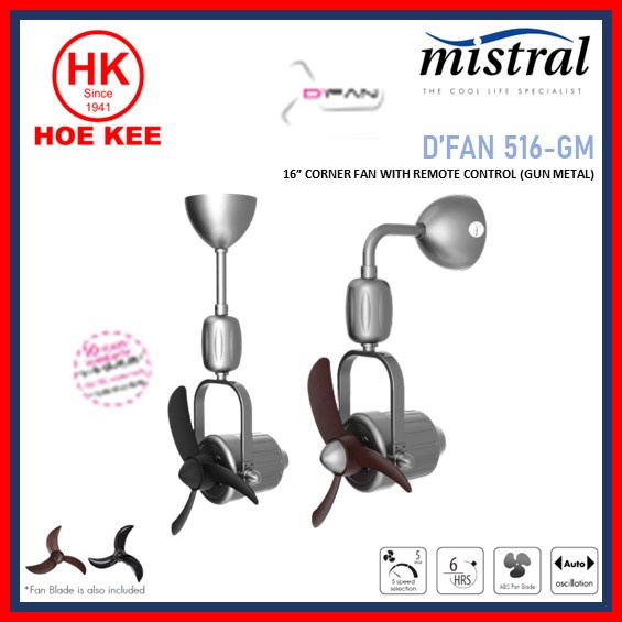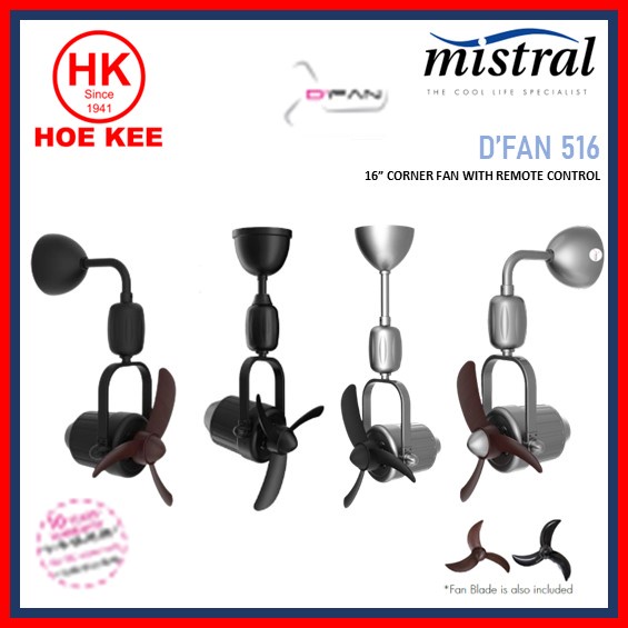 Mistral D'Fan 516 16" Corner / Ceiling / Wall Fan with Remote