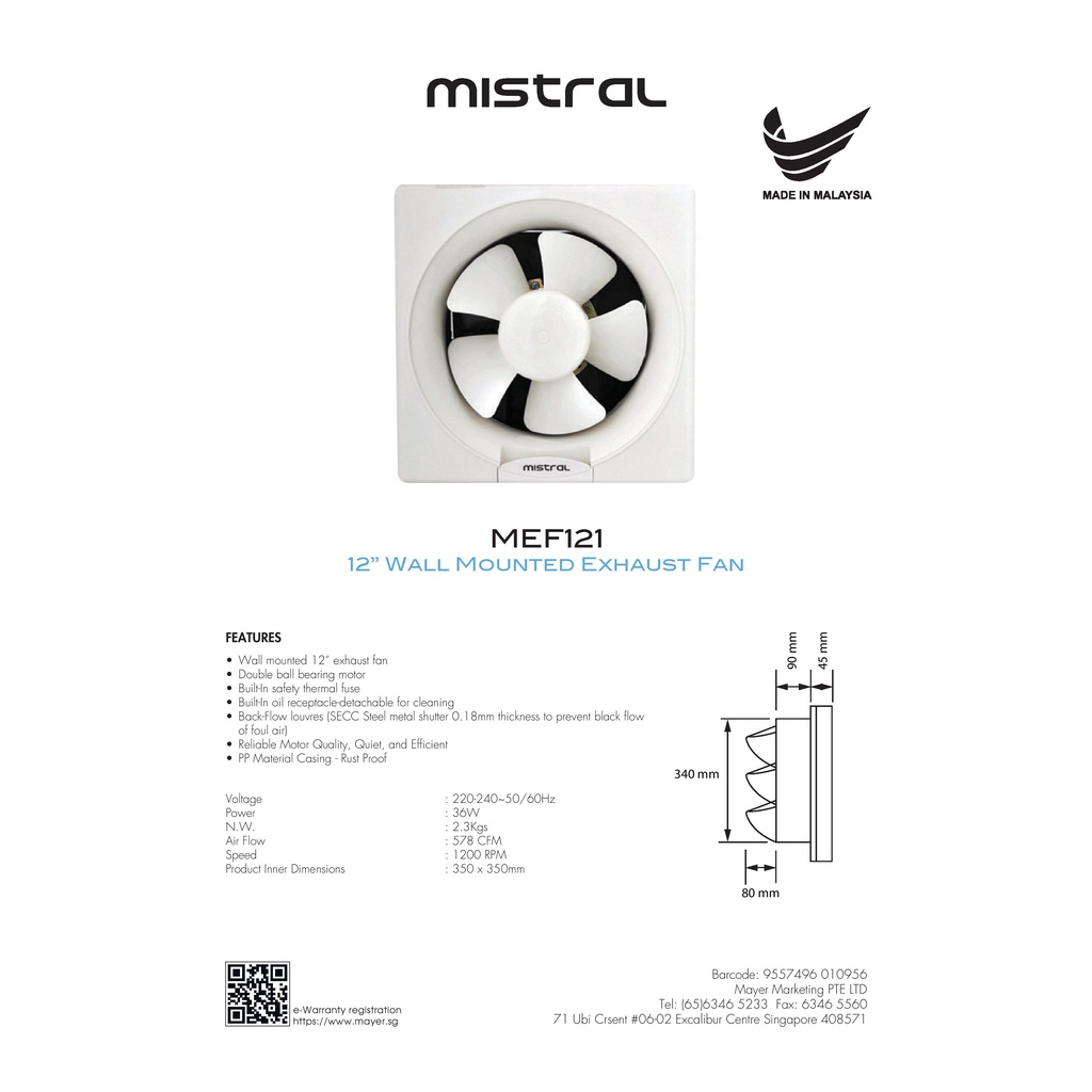 Mistral MEF121 Wall Mounted Exhaust Fan 12 Inch