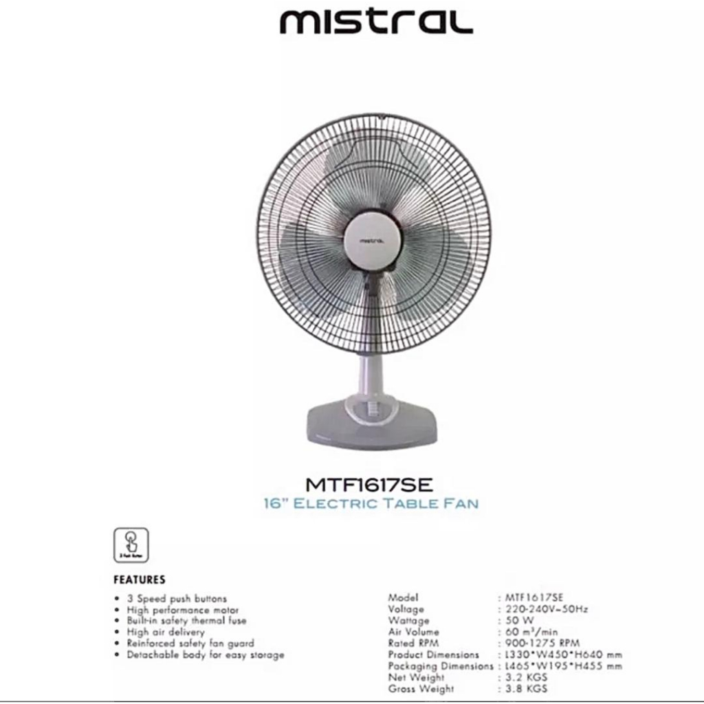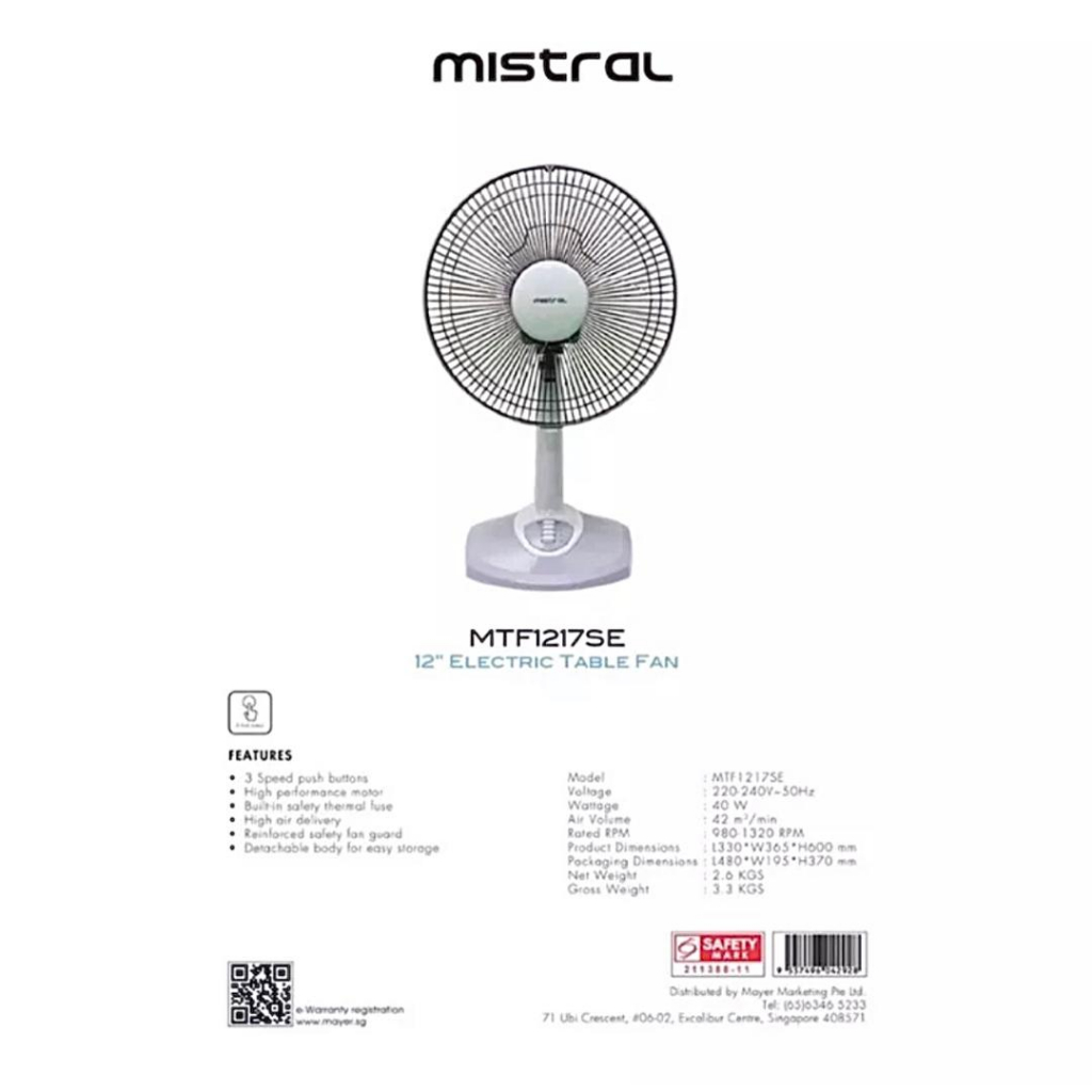 Mistral Table Fan - (12 INCH) MTF1217SE | MTF 1217SE / (16 INCH) MTF1617SE | MTF 1617SE (8 Years Motor Warranty)