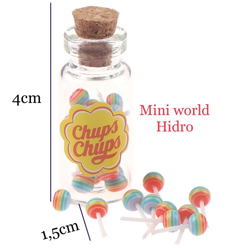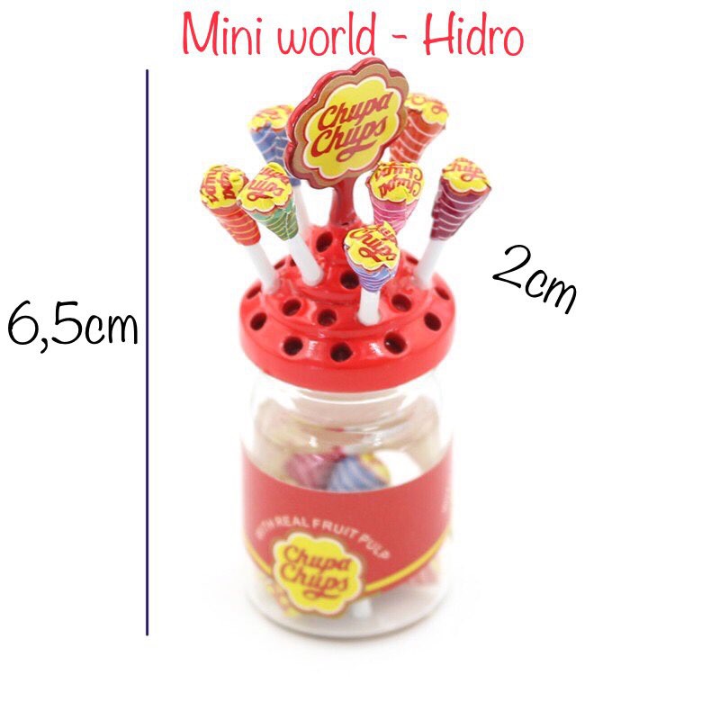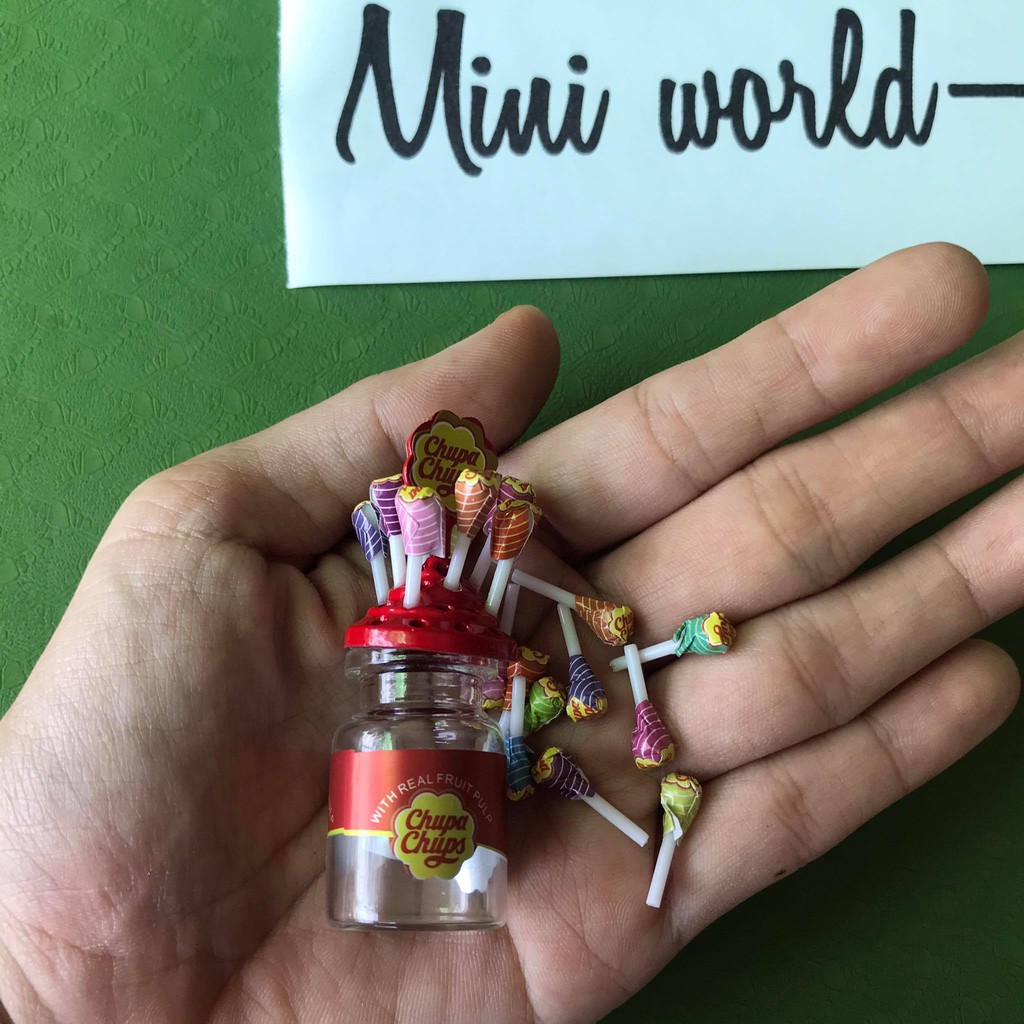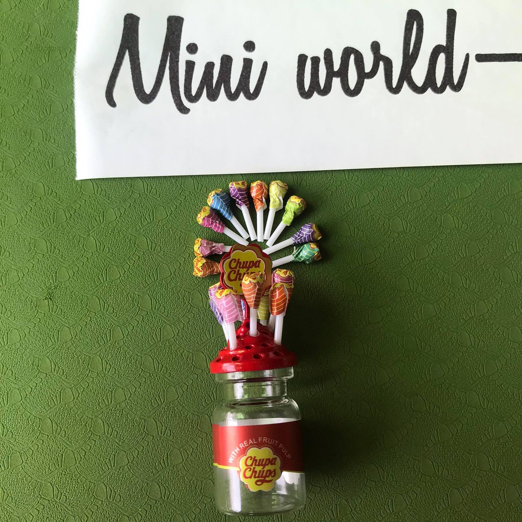 Tiny 1/12 scale mini chupa chups lollipop jar model for dollhouse decoration. The product is a tiny toy, not a real candy.