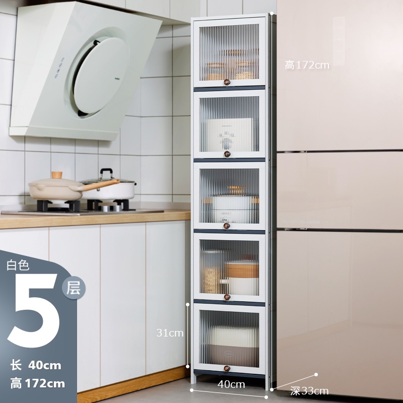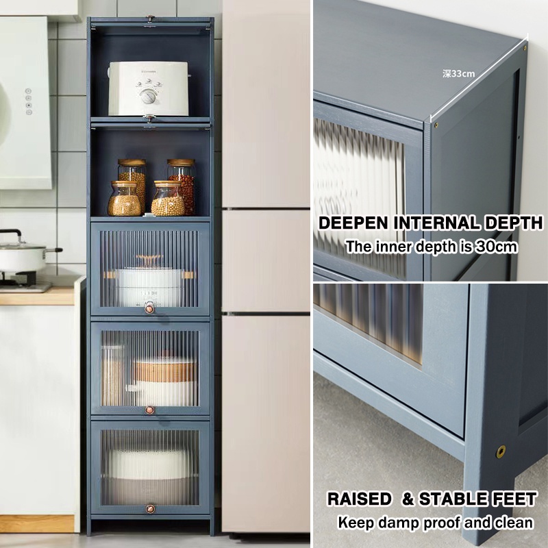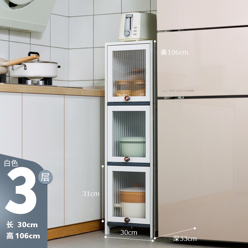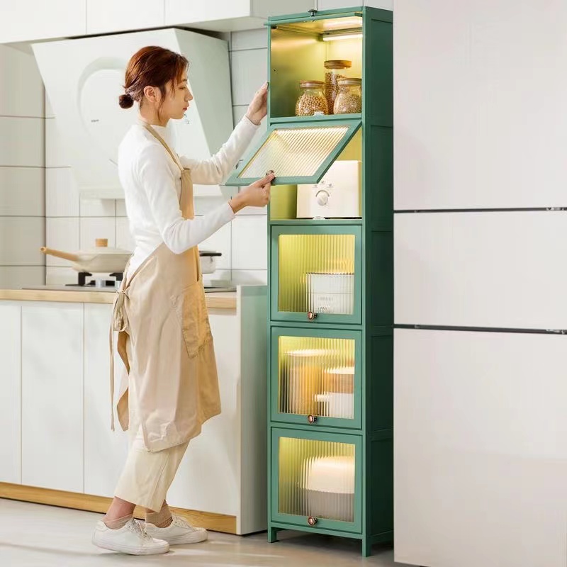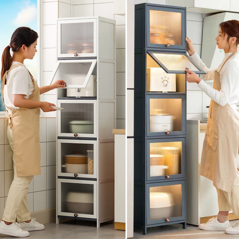 Modern Bamboo Kitchen Cabinet Kitchen Rack Storage Cabinet Narrow Cabinet with Acrylic Flip Door Bedroom & Living Room & Toilet Side Cabinet Dining Sideboard
