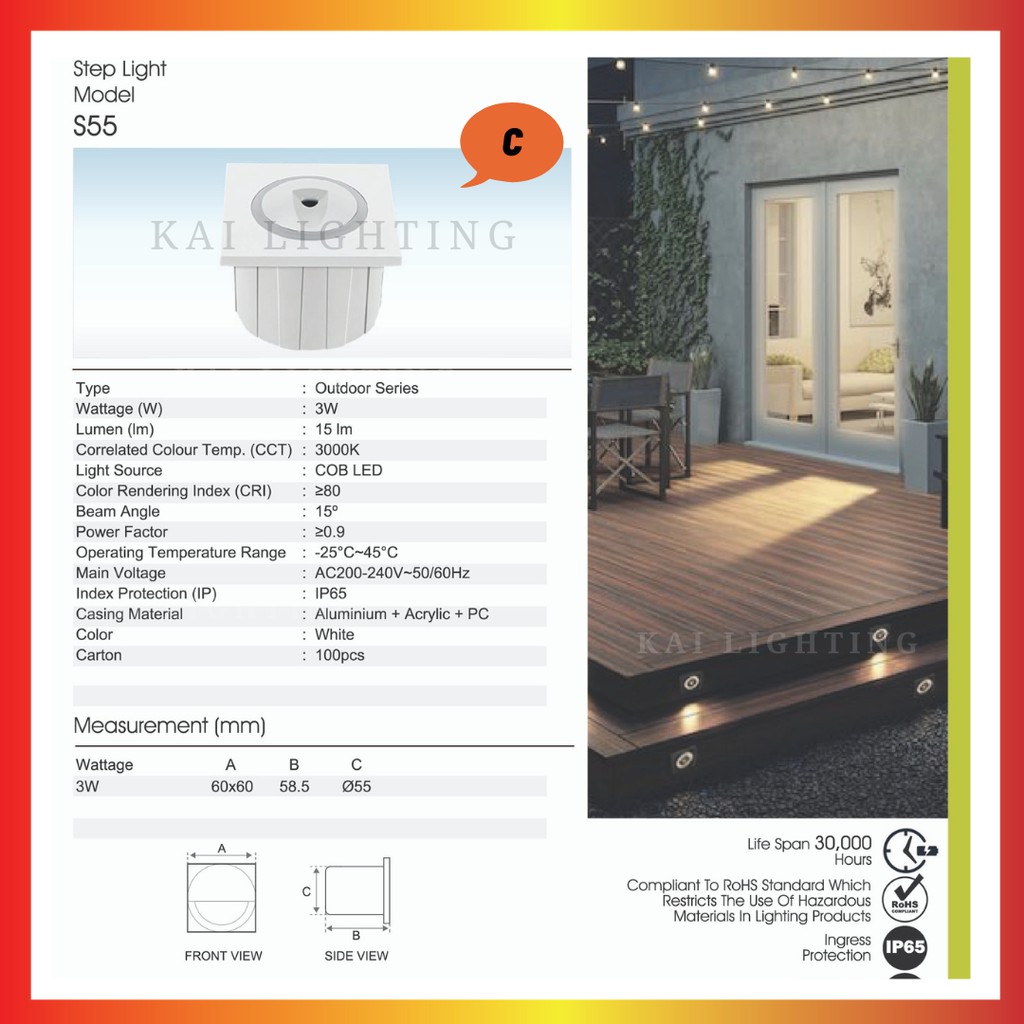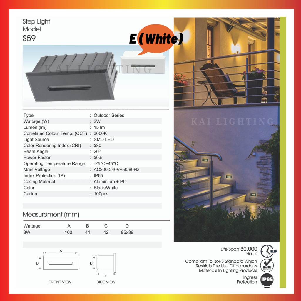 Modern LED Reccessed Step Light 3W Outdoor Weatherproof Wall Luminaire Indoor LED Staircase Light Step Lamp Warmwhite