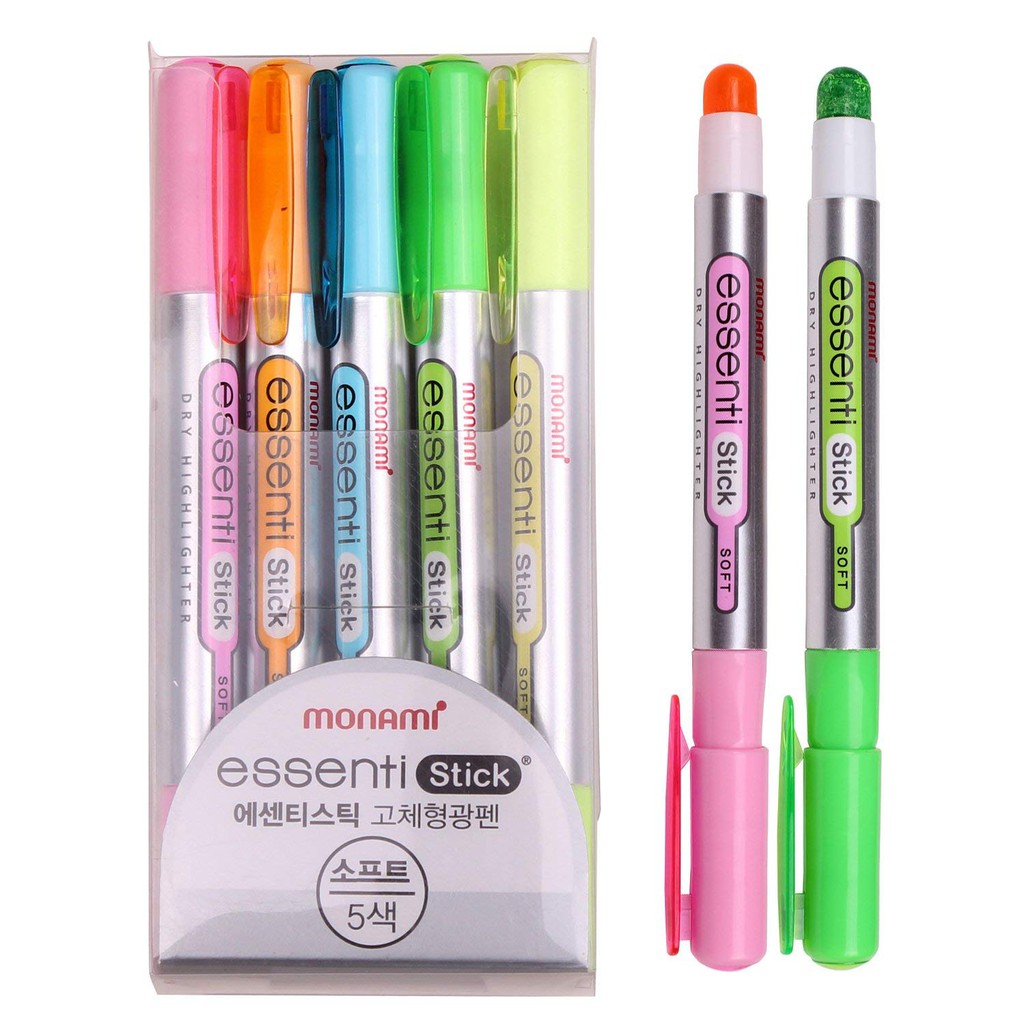 Monami Essenti Stick Soft Pastel Color Dry Highlighter Pen Marker 5 Color (5pcs)