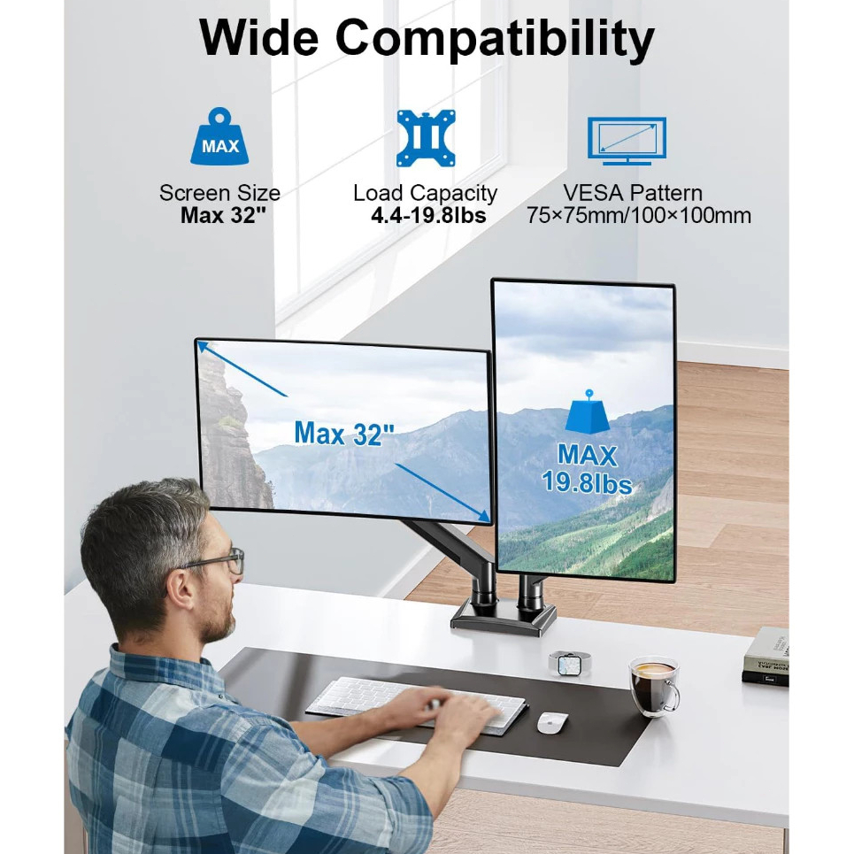 Monitor Arm dual Universal Monitor Arm Adjustable Height Angle Monitor Bracket 13"-34" Double-arm