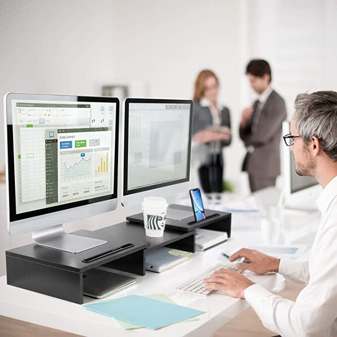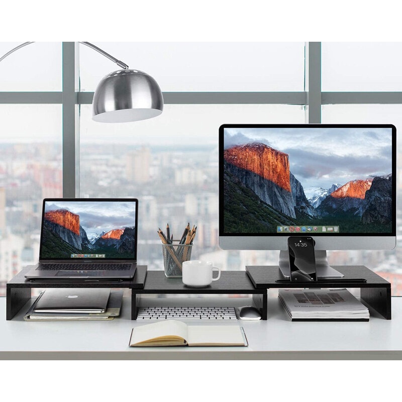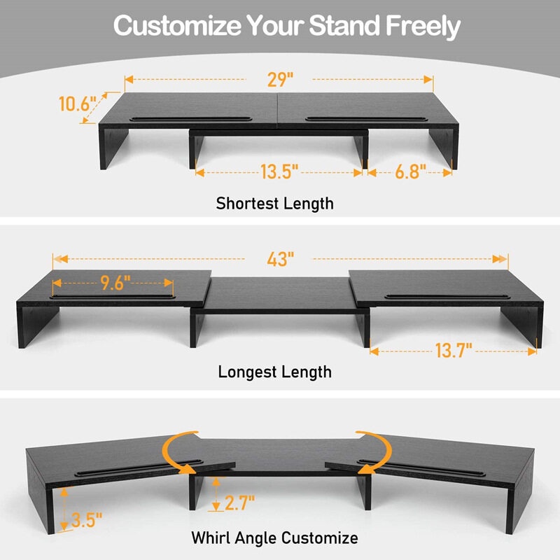 Monitor Stand Riser Adjustable Length Angle,Computer Monitor w/Slot Tablet & Cellphone,Dual Monitor