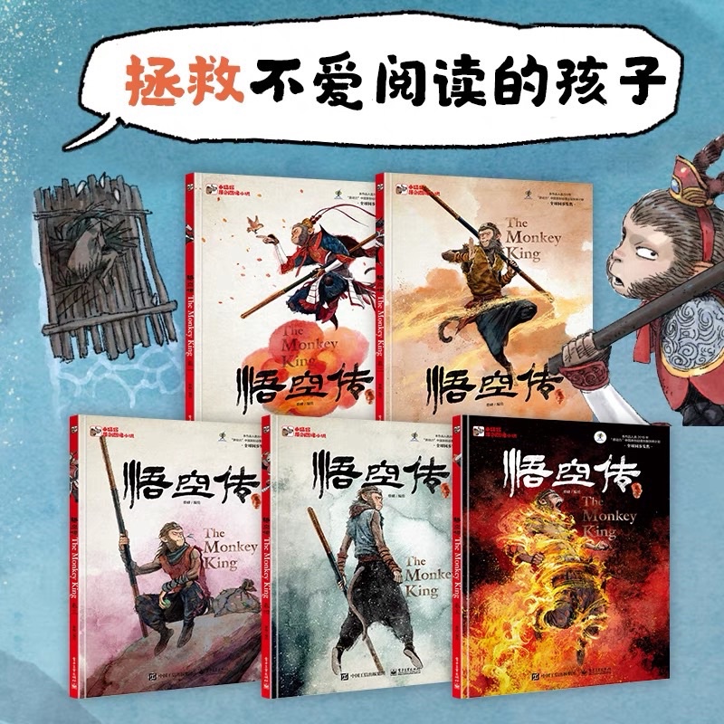 Monkey King The Monkey King The Monkey King All 5 Volumes Image Novels Children Children 3-6-12 Years Old Four Masterpieces Journey to The West Original Monkey King Monkey King Classic Animation Image Novels Extracurricular Reading Picture Books Picture B