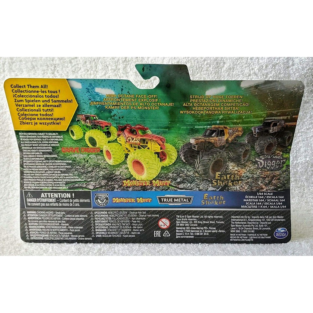 Monster Jam Official Zombie Invasion Die-Cast Monster Trucks, 1:64 Scale, 2 Pack (Monster Mutt & Earth Shaker)