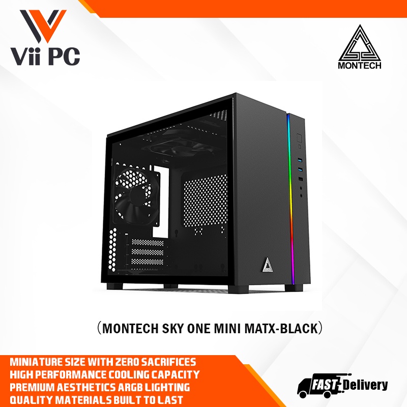 Montech Sky One Mini/3x High Airflow Fans Pre-Installed /Tempered Glass Micro/ITX ARGB Gaming Mid Tower Computer Case