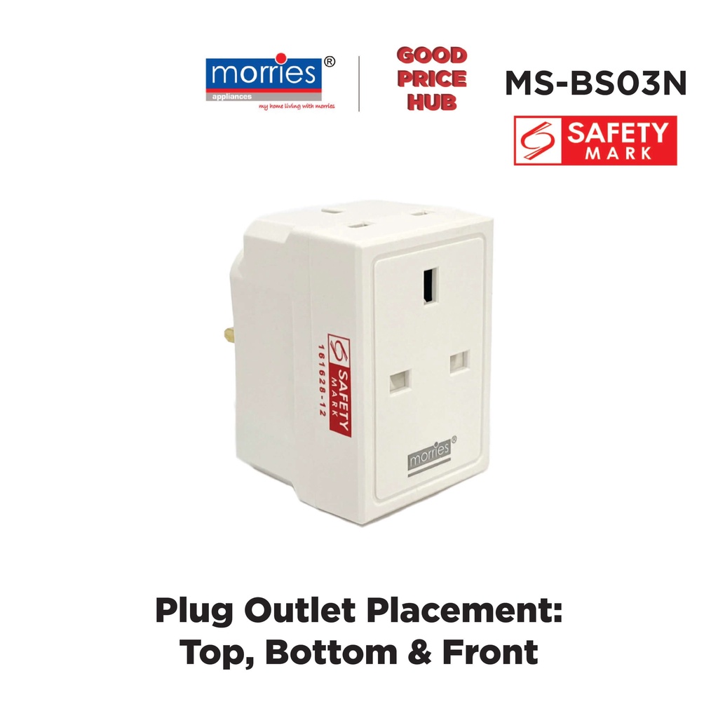 Morries 3 Way Multi Adapter Plug with Switch / Neon Light - 2 & 3 Pin Friendly